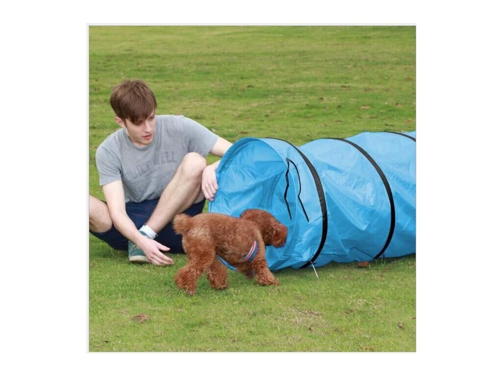 Prolézací tunel Tunnel Tent zprostředkuje dětem spoustu bezpečné zábavy, ale poslouží i jako pomocná překážka pro drezurování psů při přípravě na agility soutěže. Jednobarevný, azurově modrý tunel je vyrobený z jednovrstvé a prodyšné polyesterové látky a zapošitého spirálového drátu. Lehká tkanina se snadno udržuje čistá za použití vodou namočeného hadříku. Délka tunelu je buď téměř 300 cm nebo téměř 520 cm s hmotností cca 1,4 nebo cca 2,3 kg v závislosti na preferovaném modelu. Tunnel Tent se snadno rozloží i sbalí během několika sekund do příslušné cestovní brašny. Tunnel Tent je dostupný ve dvou rozdílných délkách s jednotným průměrem 60 cm. Ke každému z tunelů patří sada kovových kolíků pro ukotvení k zemi. Získejte prolézačku Tunnel Tent pro děti nebo pro své pejsky a zprostředkujte jim pestrou zábavu v pohodlí domova. Upozornění: Nepoužívejte prolézací tunel na hrubých a drsných plochách, jako je beton a dlažba.Dodatočné parametre