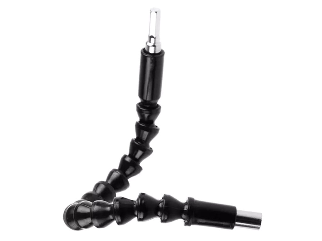Perfektní a extrémně flexibilní prodloužení bitu. Je nezbytným doplňkem vaší vrtačky nebo šroubováku, zejména v situacích, kdy potřebujete vyvrtat díru na těžko přístupném místě. Konstrukce pružin a kuličkových ložisek znamená, že můžete prodloužení ohnout v libovolném směru prakticky v libovolném úhlu a dostat svůj záběr kamkoli chcete.