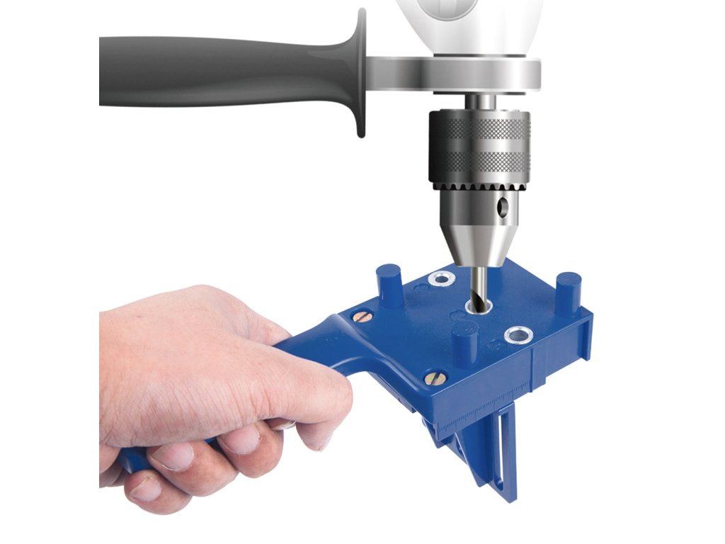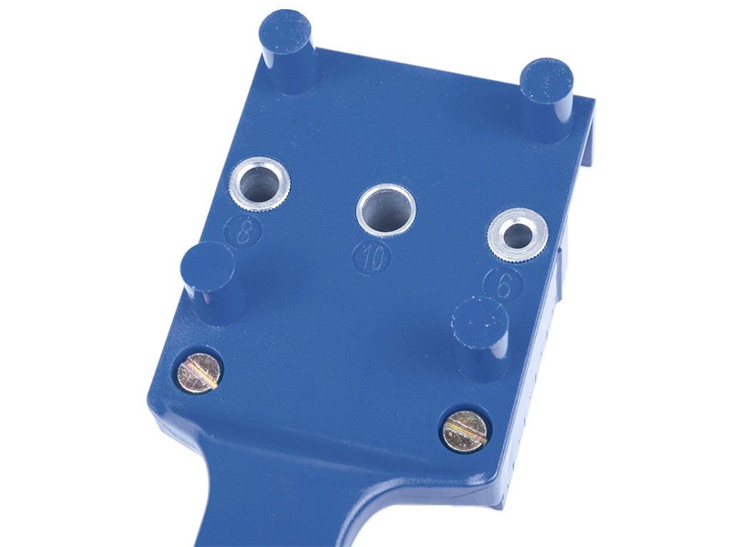 Nástroj pro kolíkové spoje typu E, L a T s průměrem kolíku 6, 8 a 10 mm. Pohyblivý čep umožňuje přesné značení a vytváření otvorů v dřevěných deskách o tloušťce 12 až 30 mm. Promyšlená konstrukce a pohodlná svěrka usnadňují upevnění a stabilní držení nástroje na místě během vrtání.