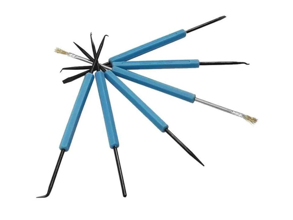 - Sada šesti nástrojů pro čištění a vypáčení elektronických součástek.