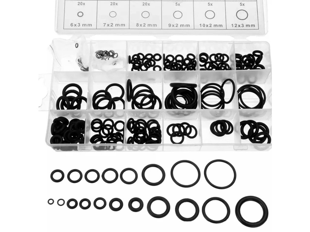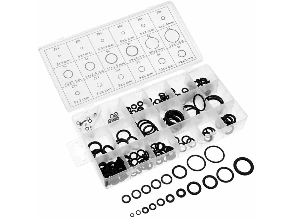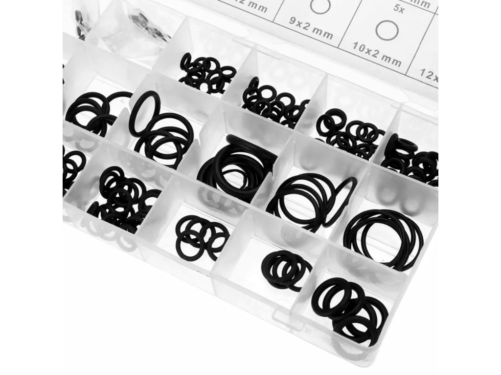 - Sada obsahuje praktické pouzdro s přihrádkami a popisem všech O-kroužků.