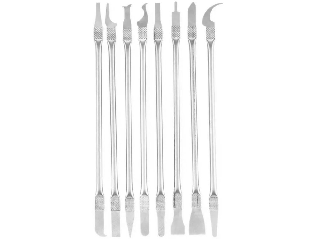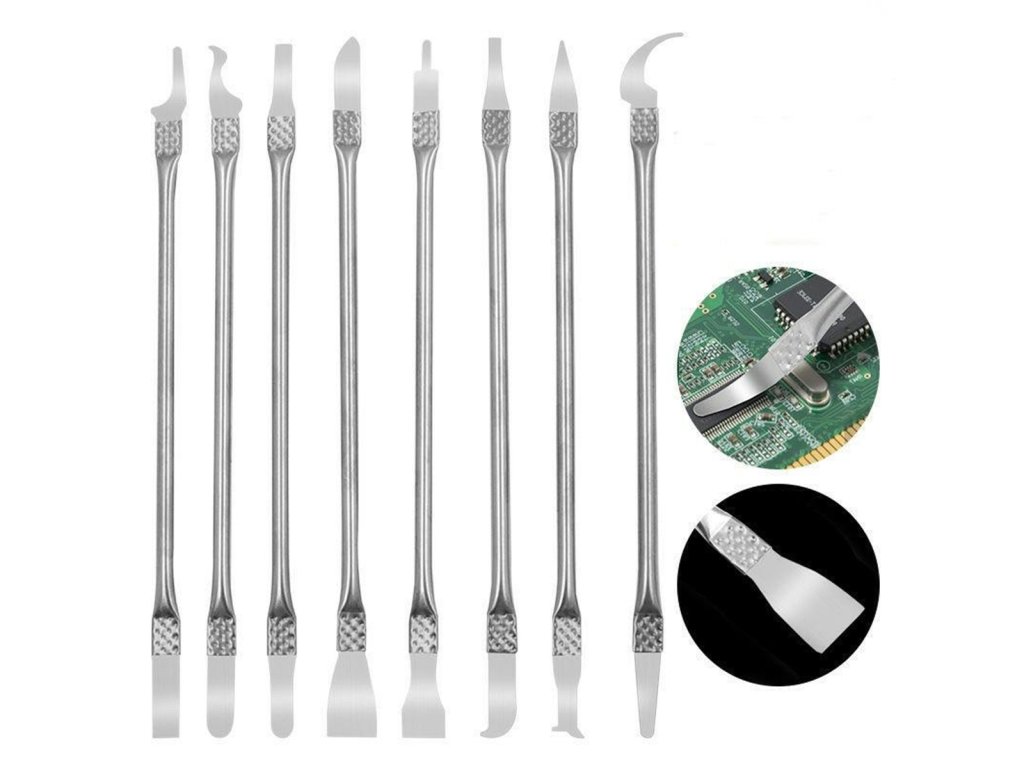 Sada 8 ks špachtlí/škrabek na BGA pasty. Čepele výrazně usnadňují čištění tištěných desek od zbytků cínu, lepidla a dalších nečistot. Všechny špachtle mají dva hroty, které vám umožní vybrat nejlepší čepel pro odstranění zbytků. Jsou také skvělé pro roztírání past a vypáčení integrovaných obvodů.
