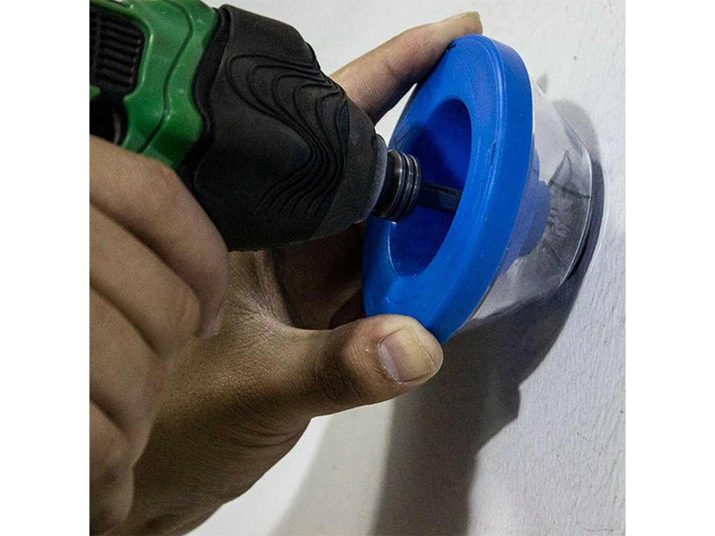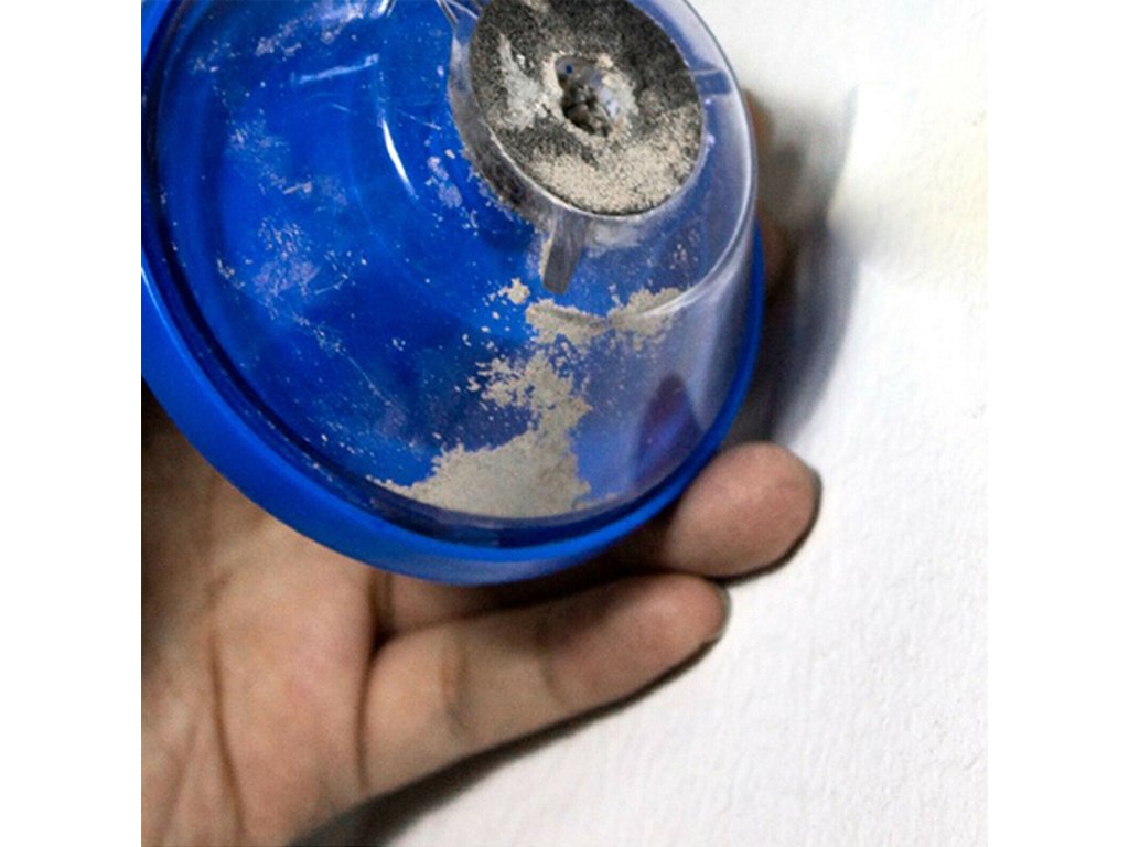Nádoba na prach (lapač prachu) pro příklepové vrtačky. Vynikající způsob, jak se vyhnout nadměrné prašnosti při renovačních pracích. Stačí vložit vrták (o průměru 4 až 10 mm) otvorem uvnitř nádoby a začít vrtat do stěny. Průhledný kryt sběrače prachu umožňuje kontrolu jeho obsahu. Protiskluzová houba nahoře přesně přilne ke stěně a zabrání rozsypání prachu ven.