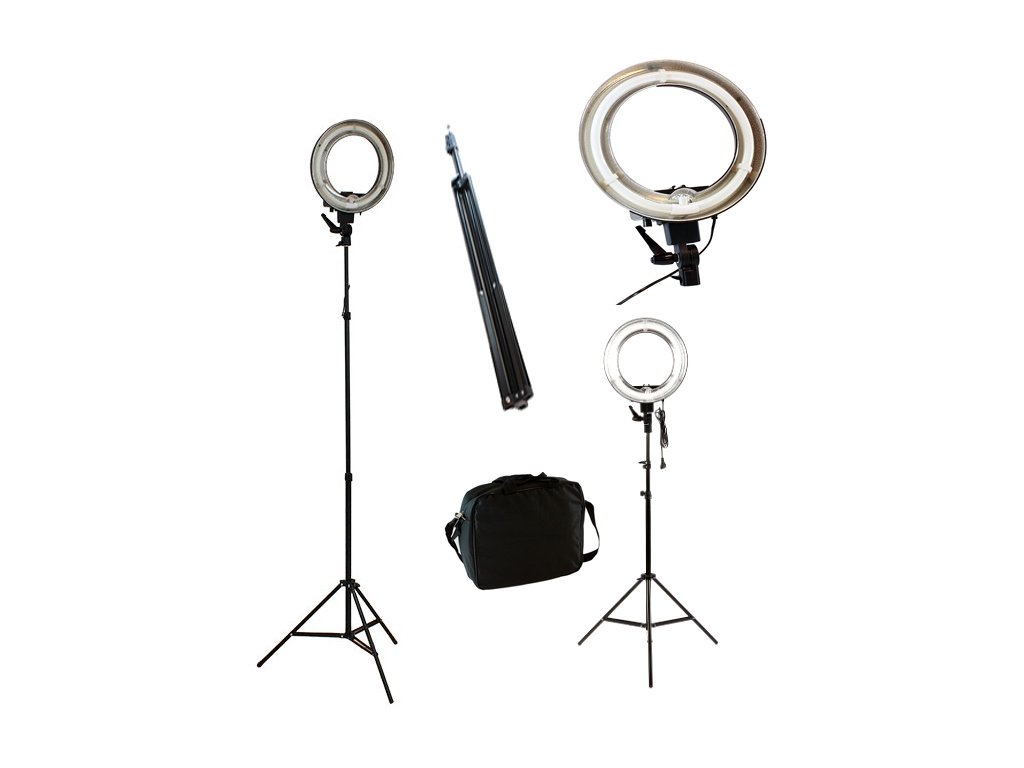 Perfektní sada osvětlení pro každého, profesionálního či ne, fotografa! 40W kruhová lampa s nepřetržitým chladným bílým světlem 5600 K, včetně trojnohého stativu, rozložitelného až do výšky 190 cm! Je to určitě fotograf musí mít! Potřebné vybavení pro každé fotografické studio! Poskytne správné světelné podmínky pro každou fotografii a snímek. Lampa o jmenovitém výkonu 40 W (odpovídá jasu staré 200W žárovky), svítí nepřetržitým a homogenním světlem. Prstencová konstrukce lampy umožňuje dokonalé a rovnoměrné osvětlení pracovního prostoru a fotografovaných lidí nebo předmětů! Skvělé řešení, které bude fungovat ve všech podmínkách a v každém fotoateliéru! Díky své lehkosti a pohyblivosti po skládání lze použít i venku!