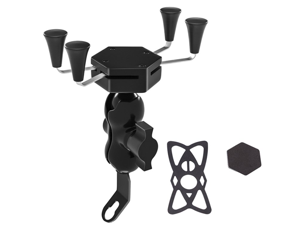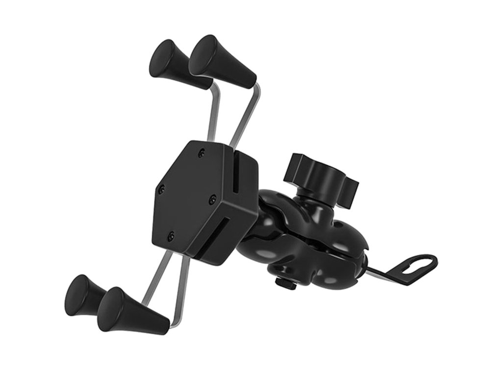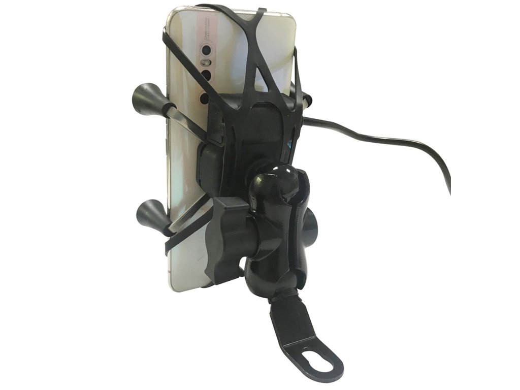 Univerzální držák telefonu na motorku. Velmi snadná instalace a použití - pasuje na všechny typy mobilních zařízení a zajišťuje jejich stabilní polohu během jízdy. Vyrobeno z kovu a pevného plastu. Silikonové klipy se dokonale přizpůsobí tvaru telefonu a zabrání jeho vypadnutí. Vestavěný USB port umožňuje nabíjení zařízení během jízdy.