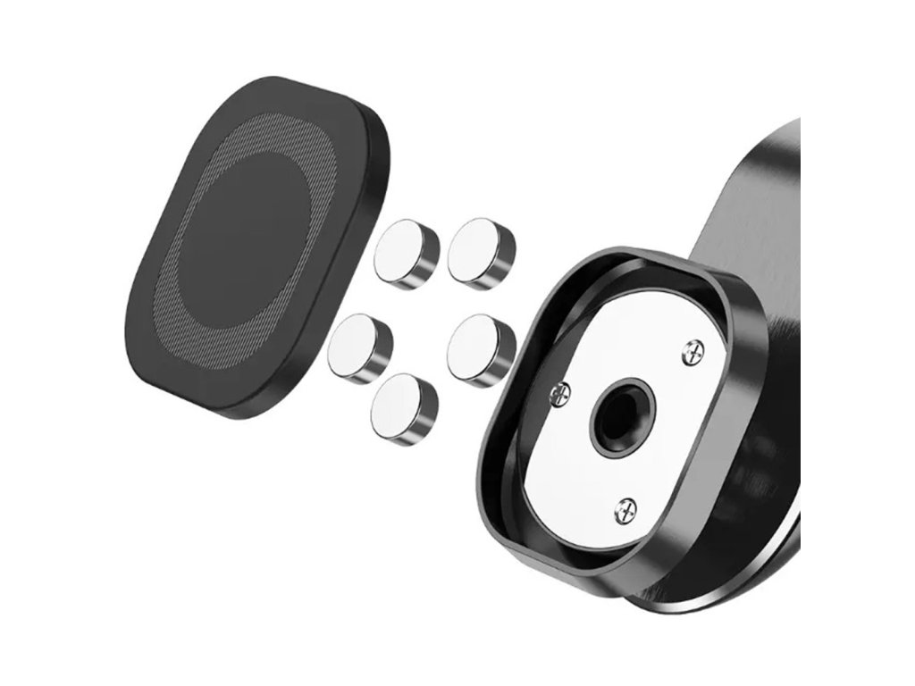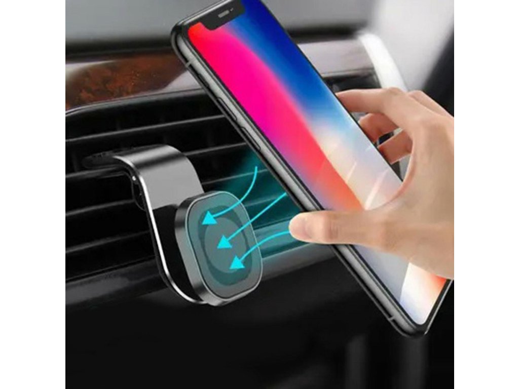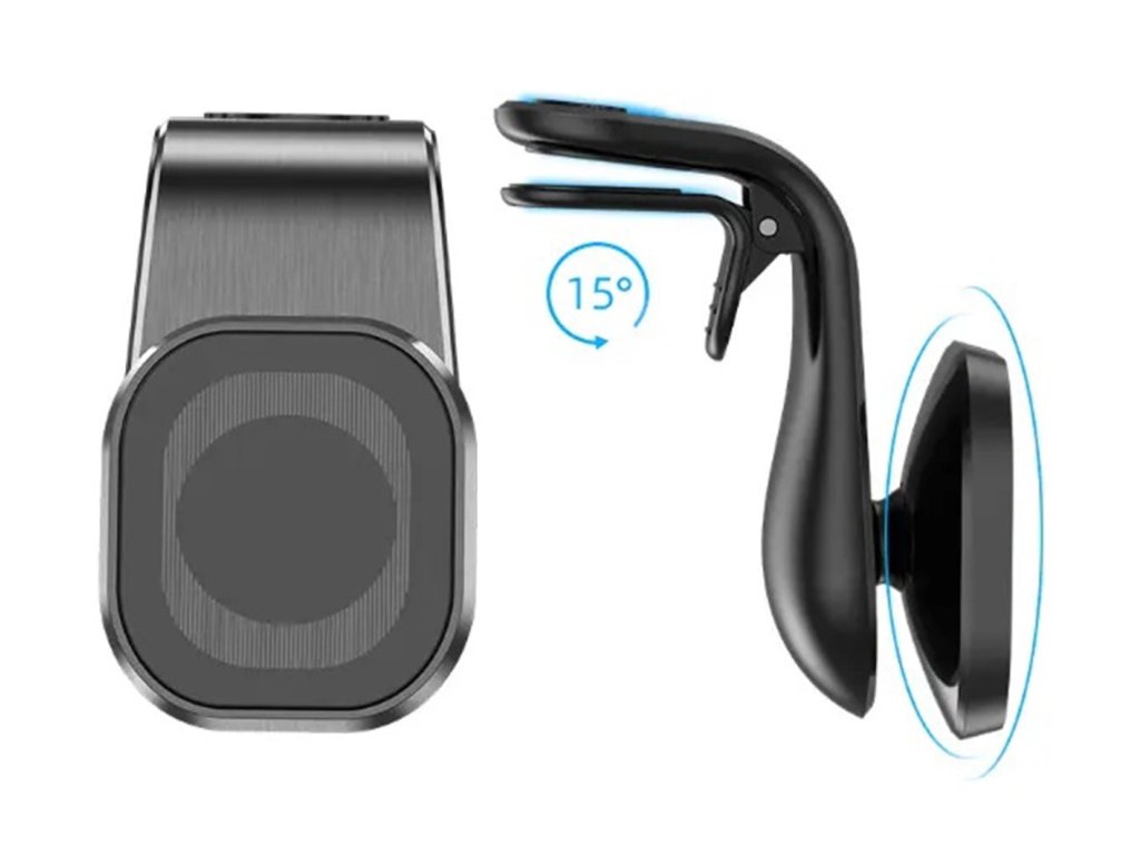 Kompaktní, hliníkový magnetický držák na telefon a další mobilní zařízení - namontovaný na ventilaci v autě. Silné neodymové magnety zajišťují pevné uchopení. Hlava otočná o 360 stupňů umožňuje umístit telefon do libovolné roviny. Je extrémně univerzální. Použití magnetického držáku neomezuje výrobek pro použití se zařízeními odpovídající výšky.