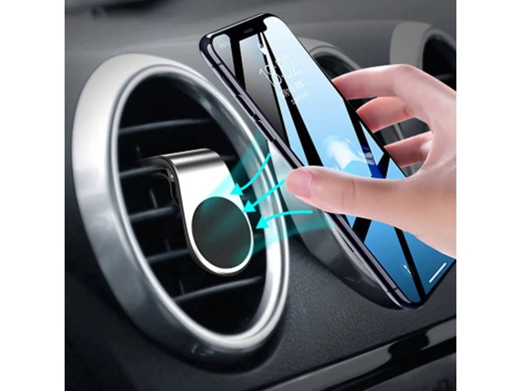 Magnetický držák na telefon / jiná mobilní zařízení - namontovaný na ventilaci v autě. Úspěšně může sloužit i jako ministojánek (v horizontální rovině). Je extrémně univerzální. Použití magnetického držáku neomezuje výrobek pro použití se zařízeními odpovídající výšky.