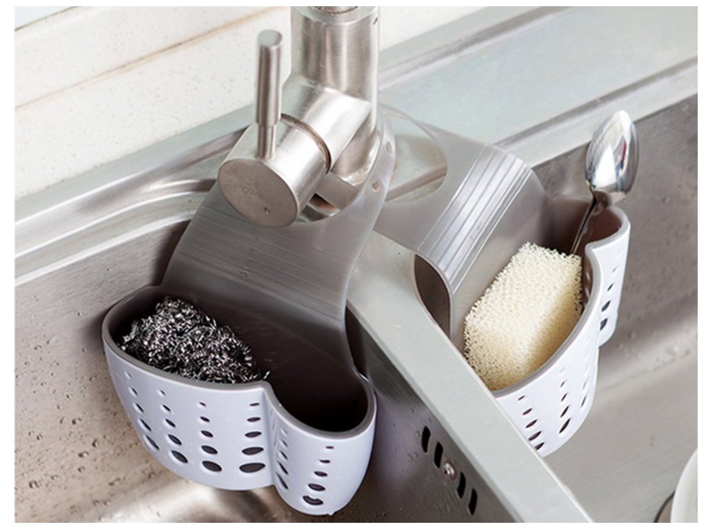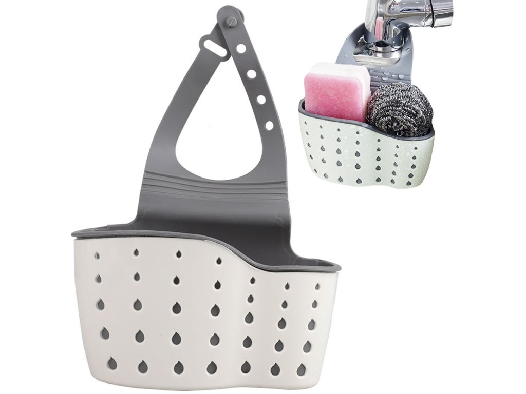 Lze v něm uložit houbičky, drátěnky, kartáče a další kuchyňské nebo koupelnové doplňky. Díky otvorům se voda nahromaděná v nádobě odvede do dřezu.