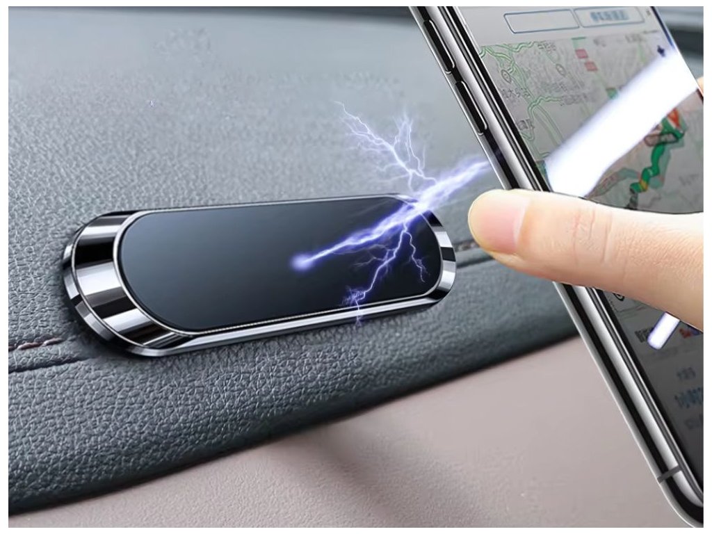Součástí balení jsou dva silné magnety, které zajistí, že váš smartphone bude pevně držet na místě - bez ohledu na jeho velikost nebo hmotnost. Magnetické destičky lze nalepit přímo na pouzdro telefonu nebo je schovat pod pouzdro. Držák je připevněn pomocí odolné lepicí pásky, která dobře přilne k různým povrchům: palubní desce, bočnímu panelu nebo kokpitu.