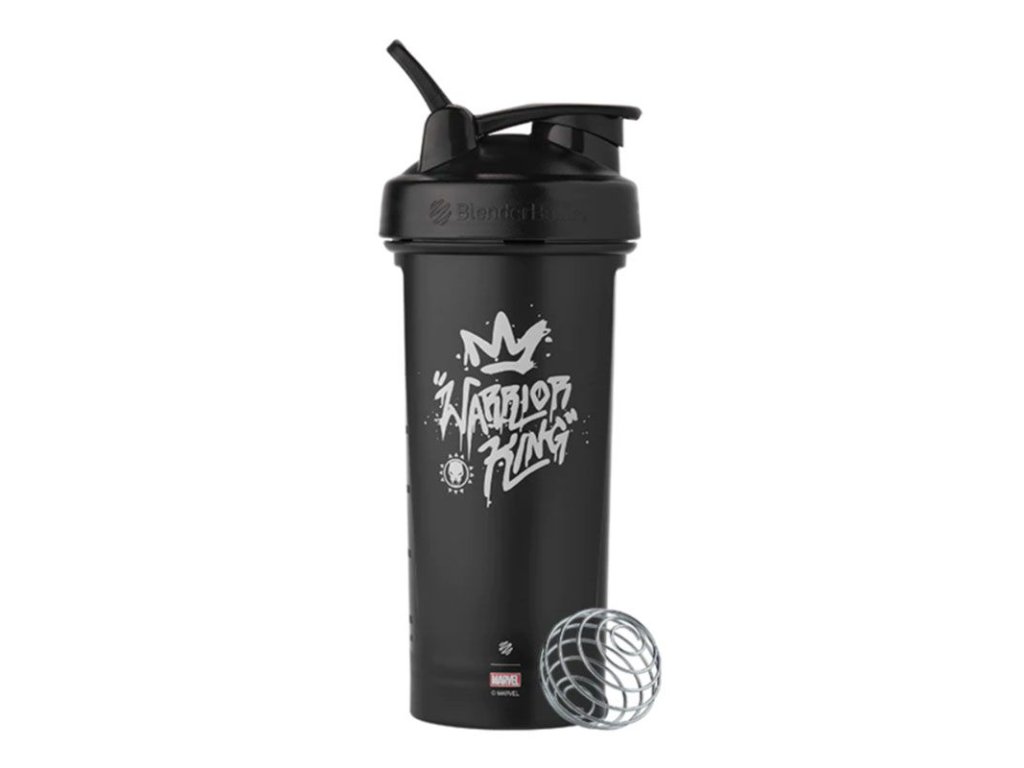 Nový a vylepšený šejkr BlenderBottle Classic Loop Pro BLACK PANTHER WARRIOR KING s objemem 820 ml.Nový šejkr Classic Loop Pro se může pochlubit zaoblenou základnou pro lepší míchání, profesionálním SpoutGuardem, který zabraňuje kontaktu s hubicí na pití a tím zabraňuje bakteriím dostat se do nápoje, a vylepšeným moderním designem.