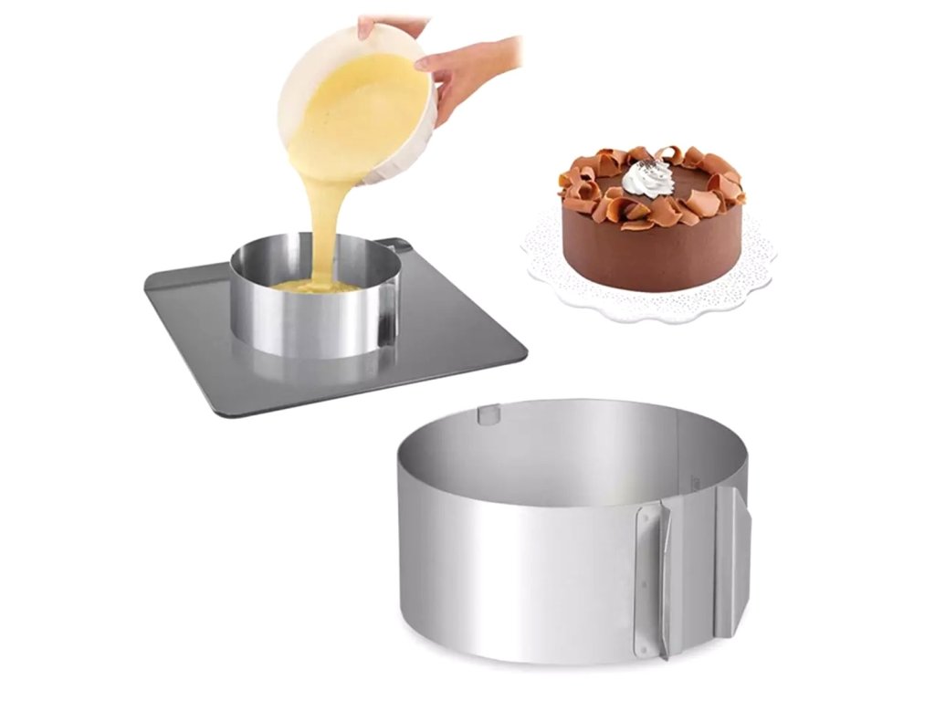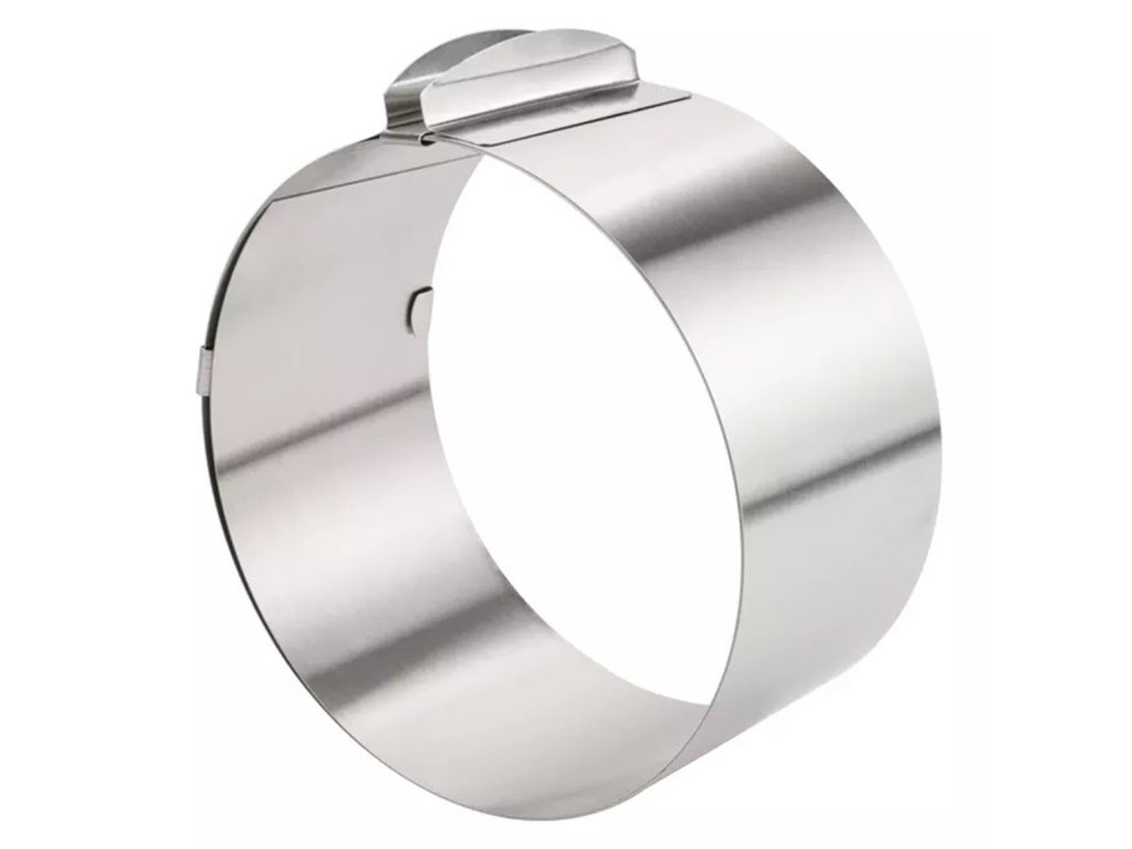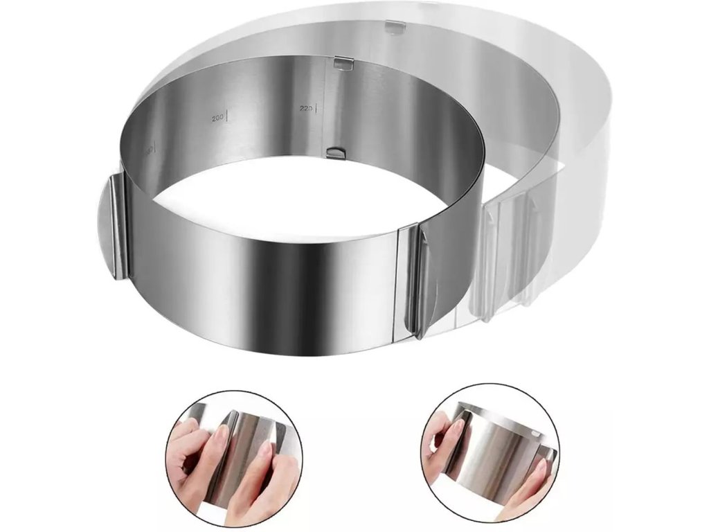 Kovový pásek na tvarování dortu. Vybaveno možností nastavení průměru od 16 do 30 cm. Použití speciální slitiny umožňuje rychlé zahřátí formy a udržení tepla po dlouhou dobu. Pevný okraj zabraňuje vytékání přísad do těsta z formy. Pevná madla umožňují snadné otevírání a zavírání forem. Vyrobeno z nerezové oceli, která zajišťuje dlouhé a bezproblémové používání.