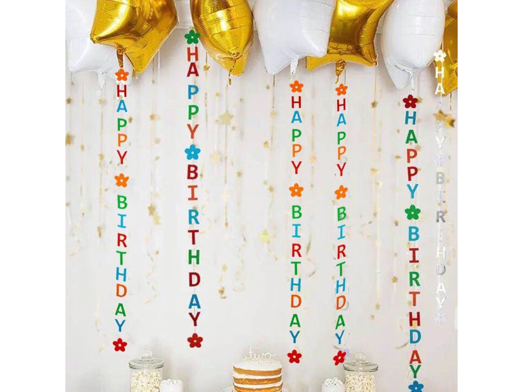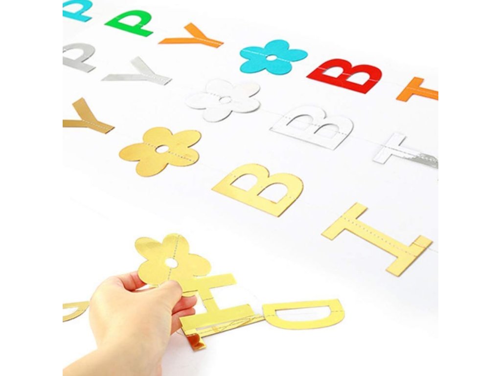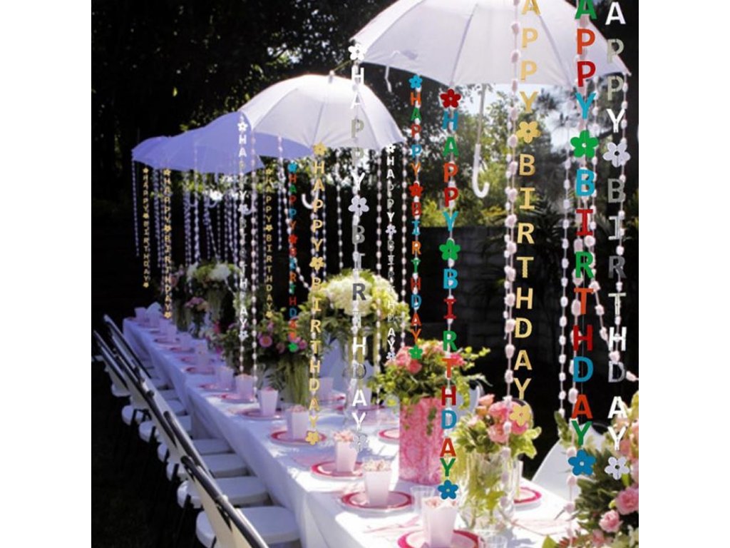 Girlanda s nápisem je tou pravou výzdobou na párty či narozeninovou oslavu. Má veselé a barevné provedení. Nápis je v anglickém jazyce. Přání krásných narozenin lze pověsit za dveře, zeď či připevnit k balónku. Mezi nápisem jsou i jemné kytičky. Vyzdobte si párty stylově a dodejte výzdobě šmrnc.