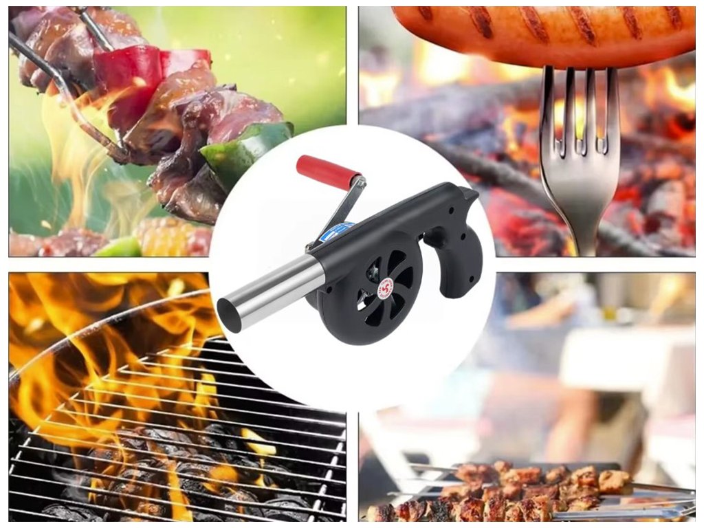 Ruční dmychadlo je nepostradatelným nástrojem při zapalování grilu, ohniště, krbu nebo vařiče. Namísto zdlouhavého foukání nebo rozfukování stačí jen pár otáček klikou, abyste vytvořili silný proud vzduchu a účinně zapálili uhlíky. Je ideální pro použití na pozemku, při kempování nebo pro domácí použití u ohniště.
