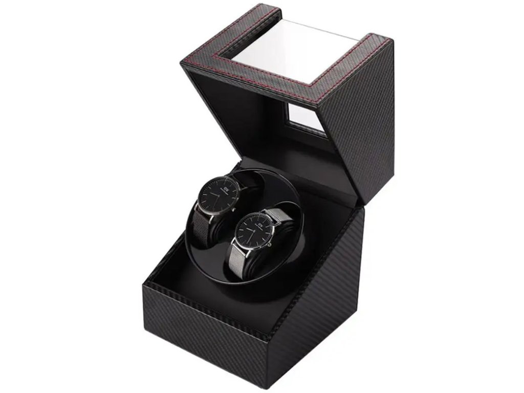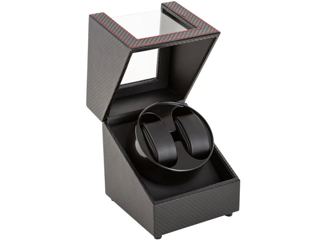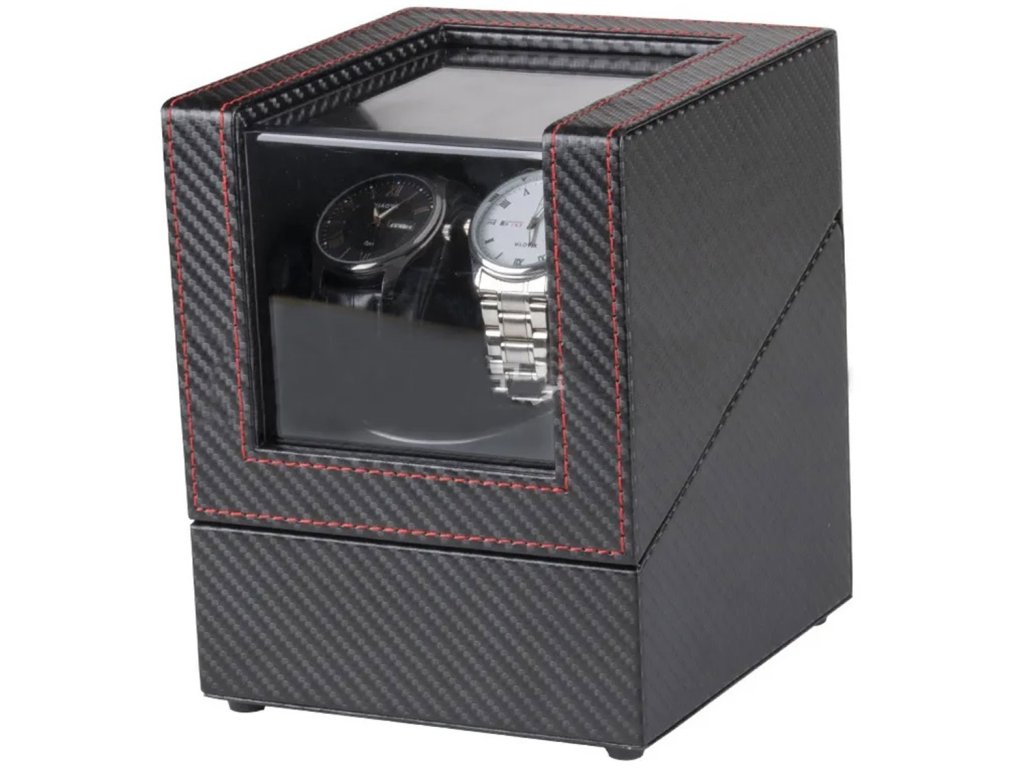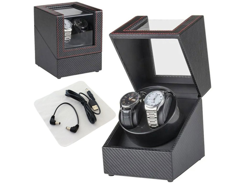 Extrémně funkční, automatický natahovač hodinek pro dvoje hodinky. Vyrobeno z elegantní černé ekokůže, prošívání červenou nití navíc zvyšuje atraktivitu pouzdra. Díky černé barvě se skvěle hodí do každého interiéru. Zařízení umožňuje automatické natahování samonatahovacích hodinek nahrazující strojky zápěstí. Přídavný kabel obsažený v sadě umožňuje připojení dvou rotomatů současně.