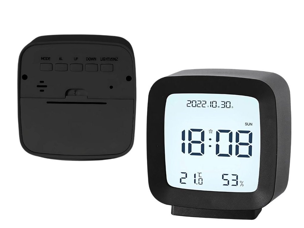 BUDÍK S DATEM A TEPLOTOU S FUNKCÍ SNOOZE LCD VLHKOST VZDUCHU