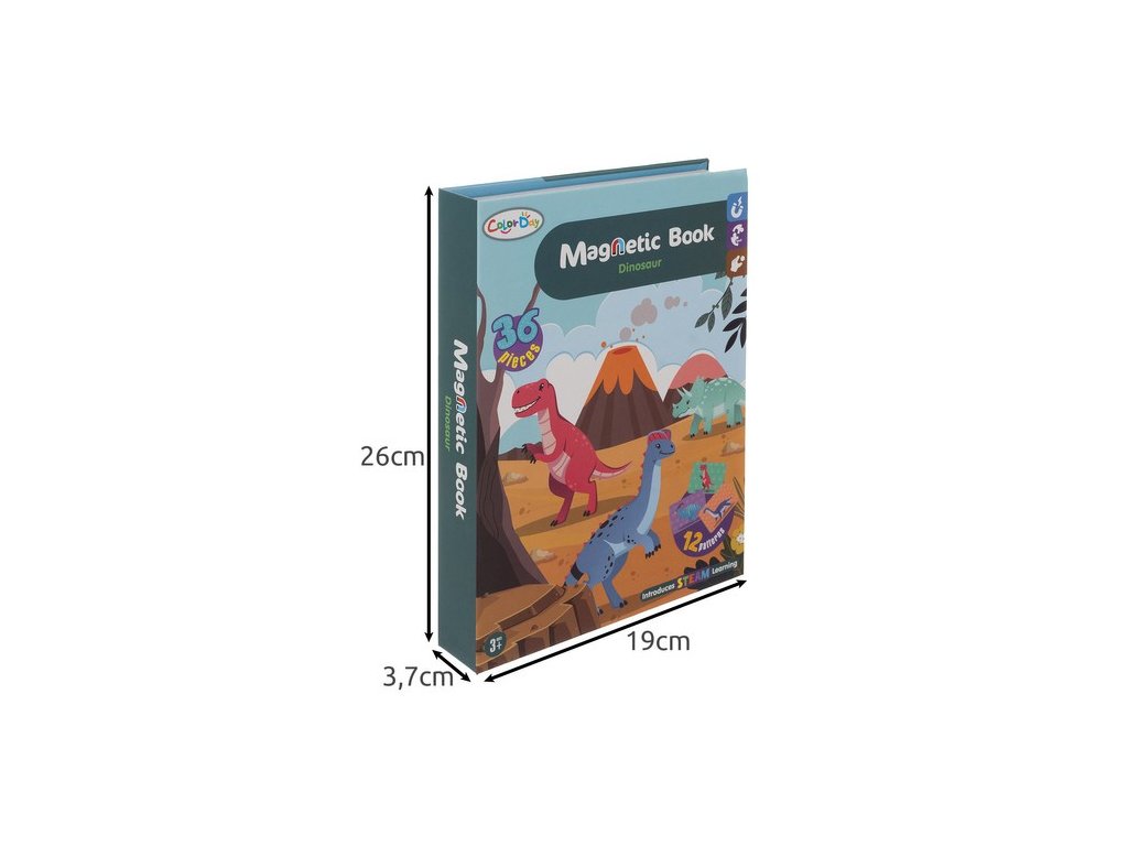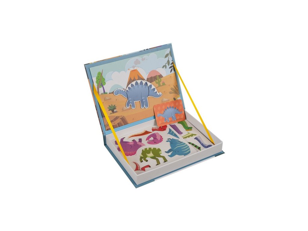 - SPECIFIKACE - téma: dinosauři; vnější materiál: křídový papír, vnitřní materiál dominantní: křídový papír, ostatní: železo + magnet + polyester) + 36 magnetů (magnet + potahovaný papír) + 6 karet se vzory (potahovaný papír); rozměry: 26 x 3,7 x 19 cm; hmotnost: 0,65 kg; hmotnost balení: 0,74 kg.