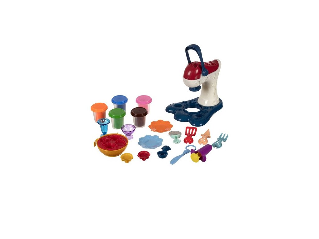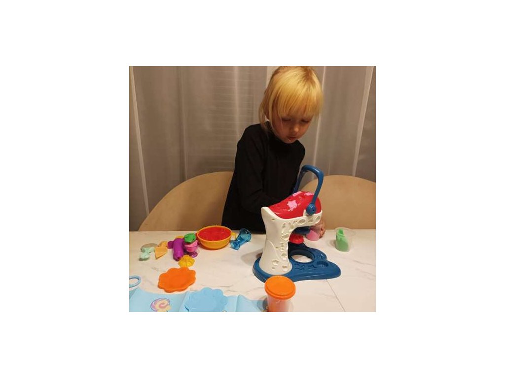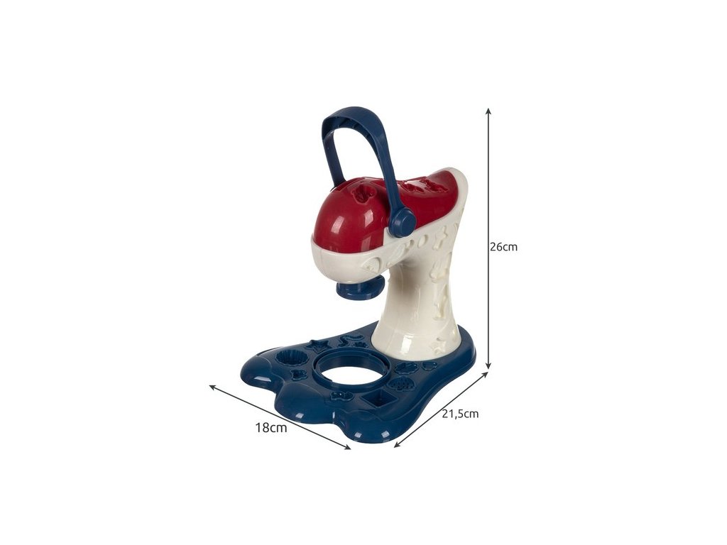 - MIXER + STŘÍKAČKA - Sada obsahuje stroj v podobě mixéru, který se pod tlakem spínače otáčí a razí sušenky nebo muffiny. Nepotřebuje to moc síly, zvládne to každé dítě. Sada obsahuje i stříkačku na vymačkávání těsta na těsto!