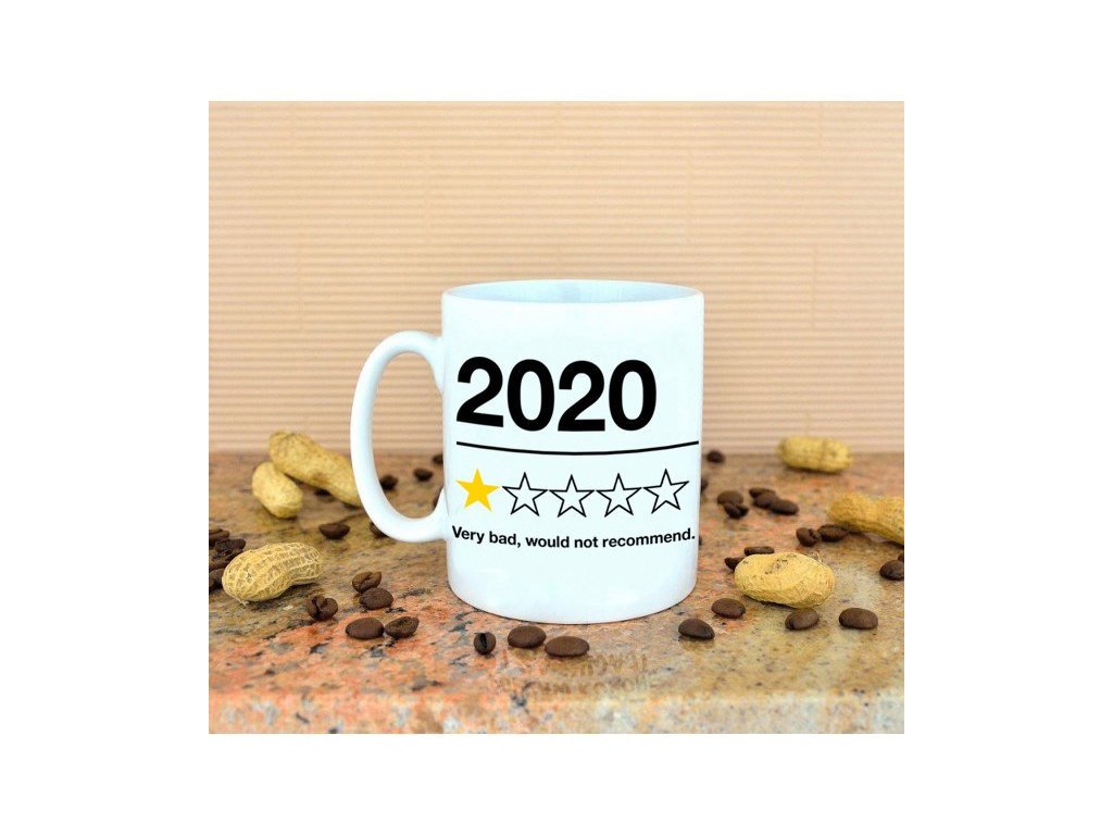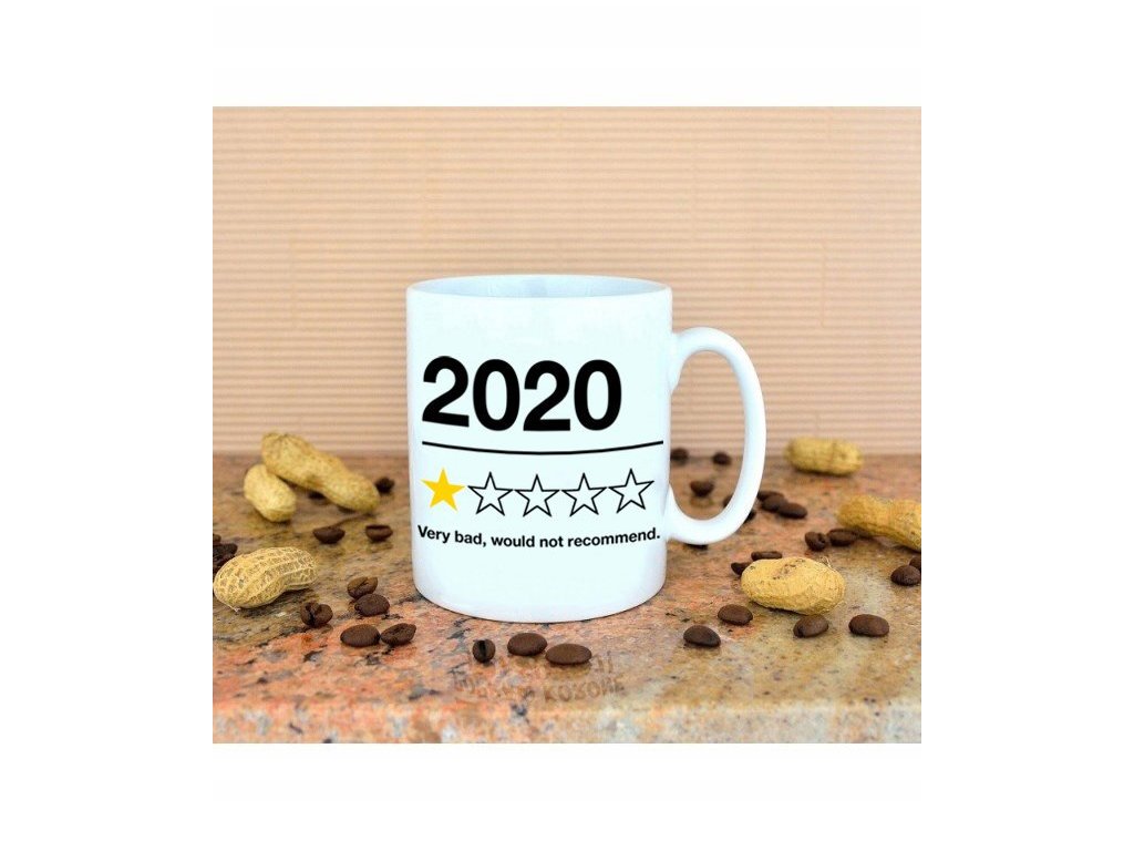 - legrační hrnek s jedinou hvězdou a textem: 2020 Velmi špatný rok, nedoporučuji :-)