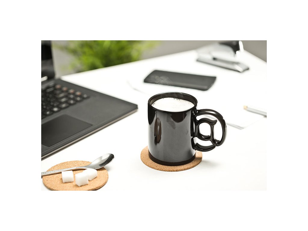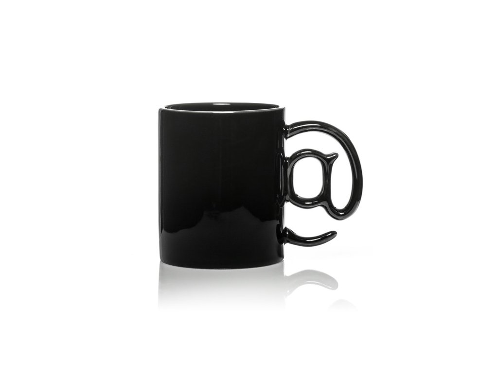 Pěkný porcelánový hrnek s rukojetí ve tvaru zavináče. Potěší každého IT specialisty.