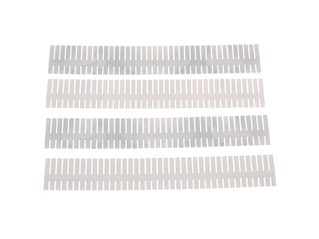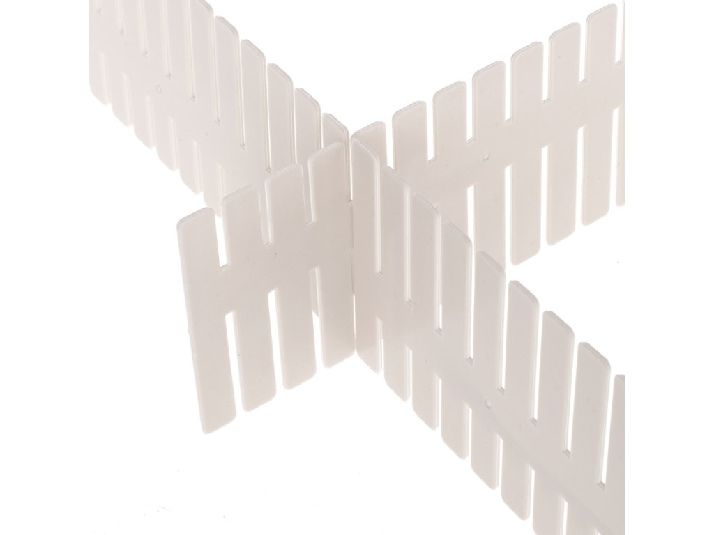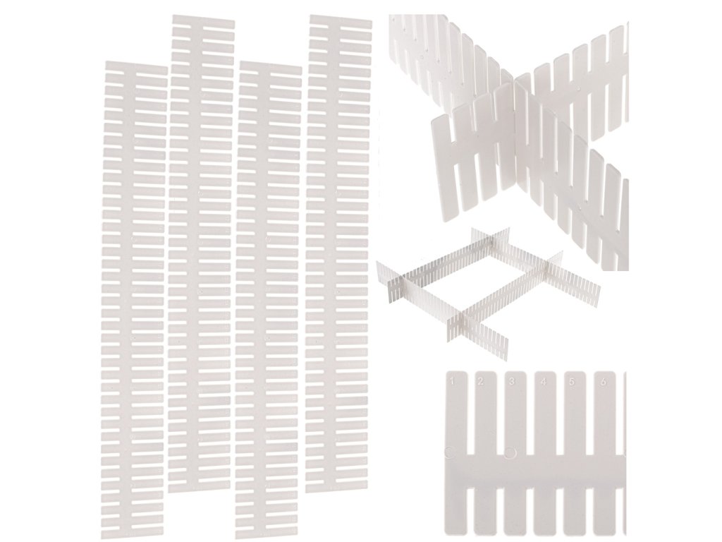 Tyto čtyři části oddělovače jsou univerzálně použitelné. Lze je libovolně stříhat na požadovanou délku a vytvořit z nich libovolný počet přepážek podle vašich potřeb.