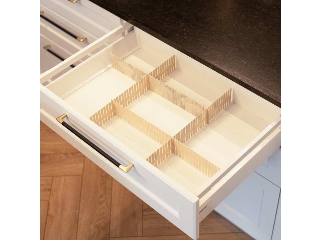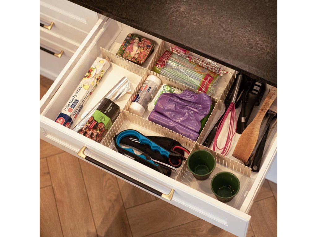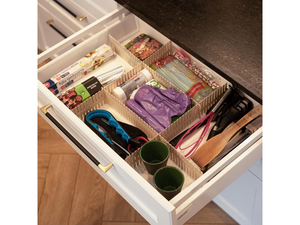 Kuchyň, koupelna, ložnice, garáž, kancelář - organizér do zásuvek vám usnadní udržovat pořádek! Umožňuje efektivně oddělit položky tak, aby se nepomíchaly a "nelétaly" po celé zásuvce.
