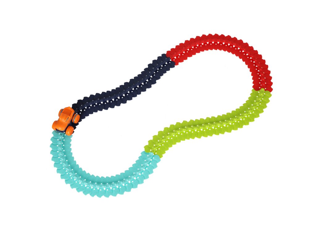 Sada se skládá z 96 kostek ve čtyřech barvách, které po správném spojení vytvoří pružnou dráhu, po které bude autíčko jezdit závratnou rychlostí. Nebojí se ostrých zatáček ani jízdy do kopce - zvládne každou výzvu!