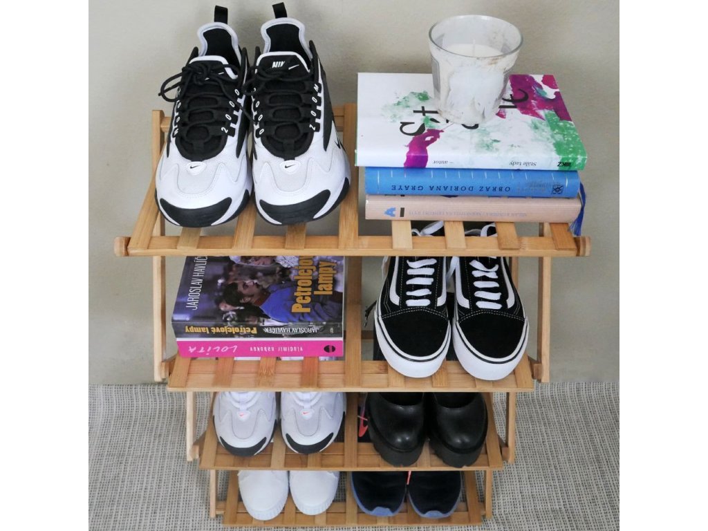 Udělat si pořádek doma můžete snadno s pomocí dřevěného botníku. Praktický designový regál se 4 policemi se hodí nejen k uspořádání lodiček a tenisek. Postavit jej můžete třeba do koupelny, kde si zorganizujete ručníky, župany nebo kosmetiku. Bude se hodit i v pracovně jako police na knížky, dekorace nebo květiny.