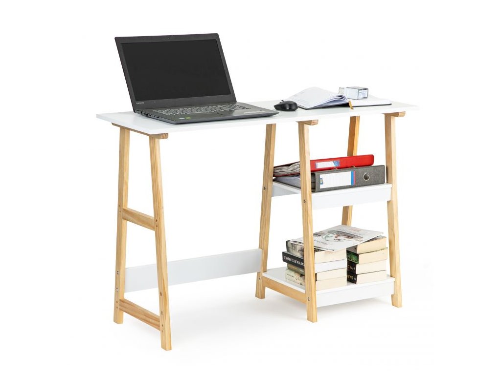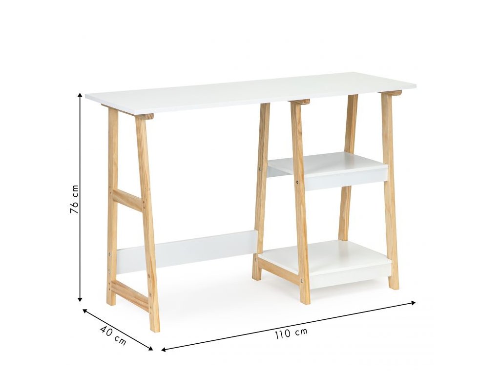 Svršek je vyroben z laminované desky, díky které je odolný vůči každodennímu použití. Pro snadné skladování kosmetiky, kancelářských potřeb nebo jiných drobností je stůl vybaven dvěma funkčními policemi, do kterých se vejde vše, co chcete mít po ruce.