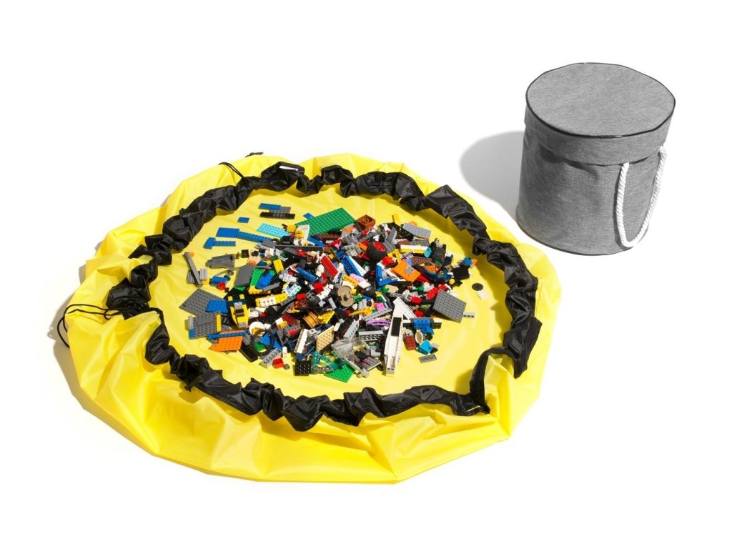Master Skládací koš na hračky s hrací podložkou 2v1 - šedá/žlutá