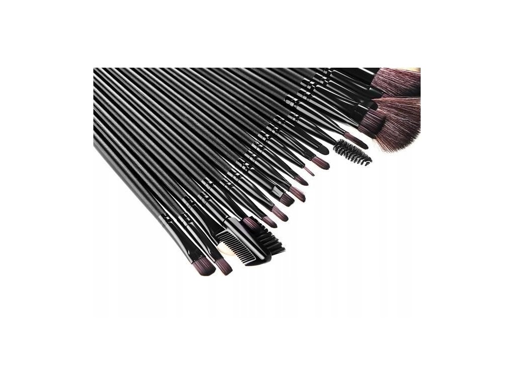 Kosmetické štětce jsou vedle kosmetiky neodmyslitelným prvkem dokonalého make-upu. Tato mimořádně praktická sada se skládá z 24 různých typů štětců. Najdete zde např.: vějířový štětec, štětec na podkladovou bázi, na tekutou kosmetiku, na korektor, na rty a konturování tvaru rtů, na zvýraznění tvaru obočí, na oční stíny, na konturování, roztírání stínů, tvářenky, hřeben a kartáček na řasy a obočí a oční linky.
