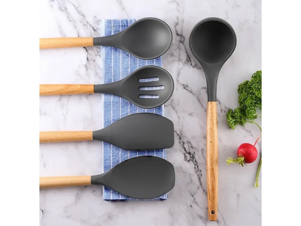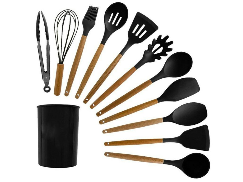 Multifunkční a kompletní sada kuchyňských doplňků. Sada obsahuje až 12 nástrojů, které jsou nenahraditelné v každé kuchyni. Vyrobeno z lehkého a odolného materiálu, který nepoškrábe povrch nádobí (silikonové hroty). Odolný vůči vysokým teplotám a bezpečný při kontaktu s potravinami. Sada obsahuje praktickou nádobu, která zároveň slouží jako odkapávač.