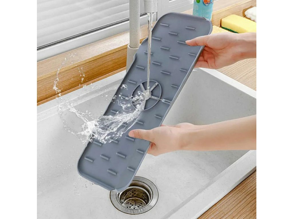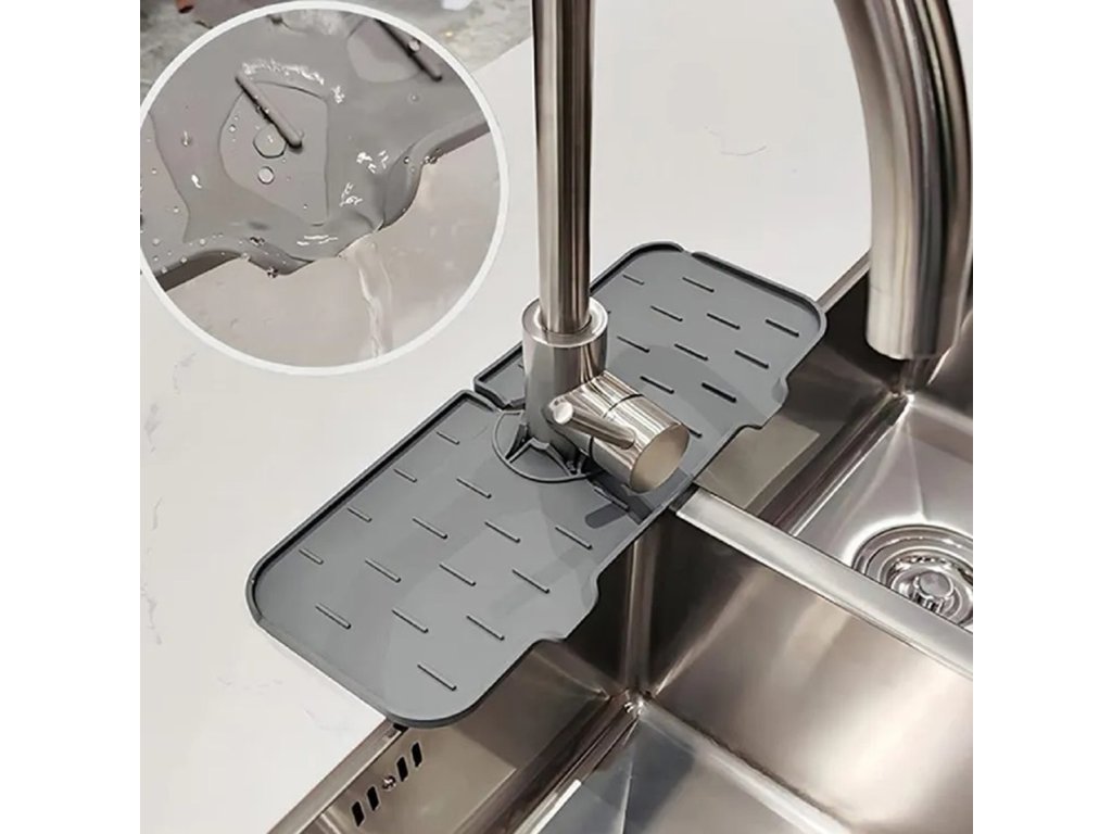 Silikonová podložka na vnitřní stranu dřezu. Chrání kuchyňskou desku před navlhnutím. Usnadňuje tok vody přímo do odtoku pomocí speciálního ražení. Vyrobeno z pružného materiálu, který se dokonale přizpůsobí tvaru dřezu. Snadno se udržuje v čistotě - stačí ji vytáhnout a opláchnout.