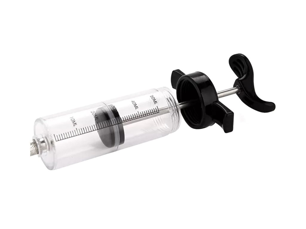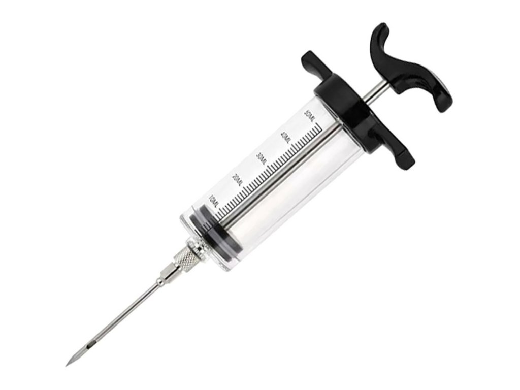 Injektor na maso o objemu 50 ml. Vynikající sada vybavená 3 ocelovými jehlami různých délek. Umožňuje rychle a pohodlně zvýraznit chuť masa vstříknutím marinády, omáčky nebo koření. Nenahraditelná pomůcka v každé kuchyni a udírně .