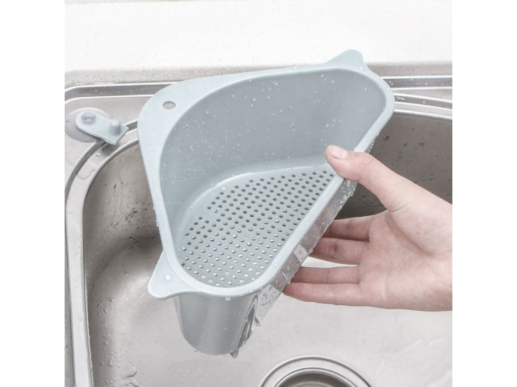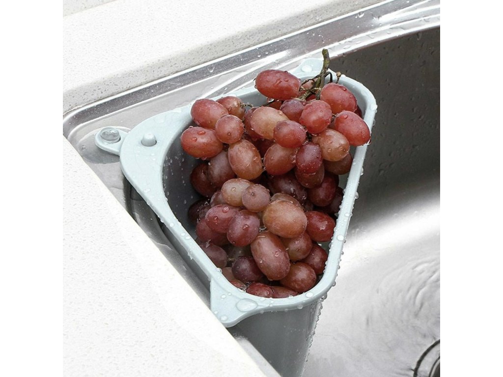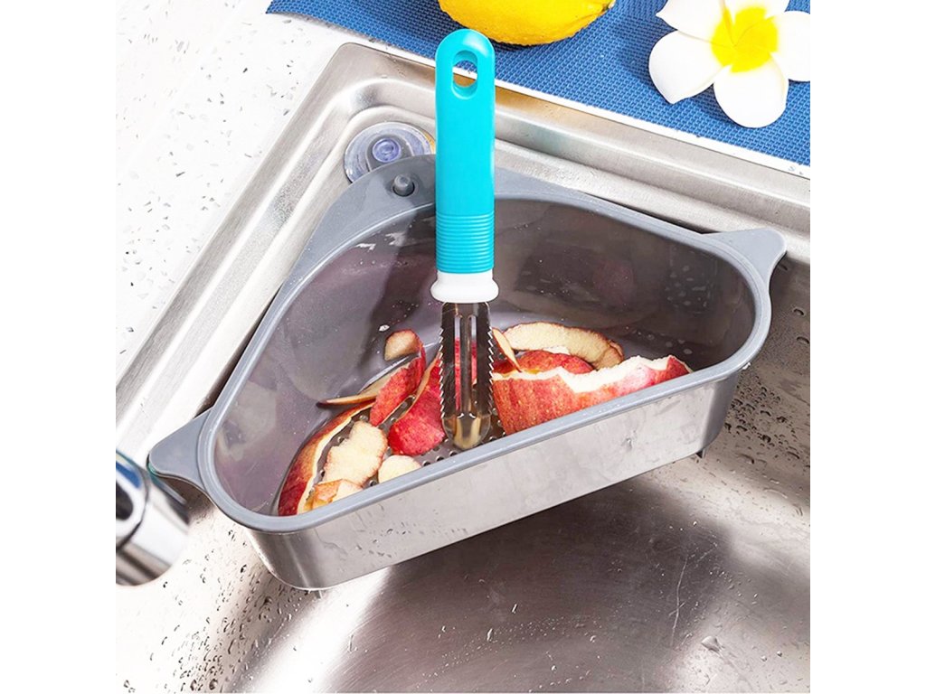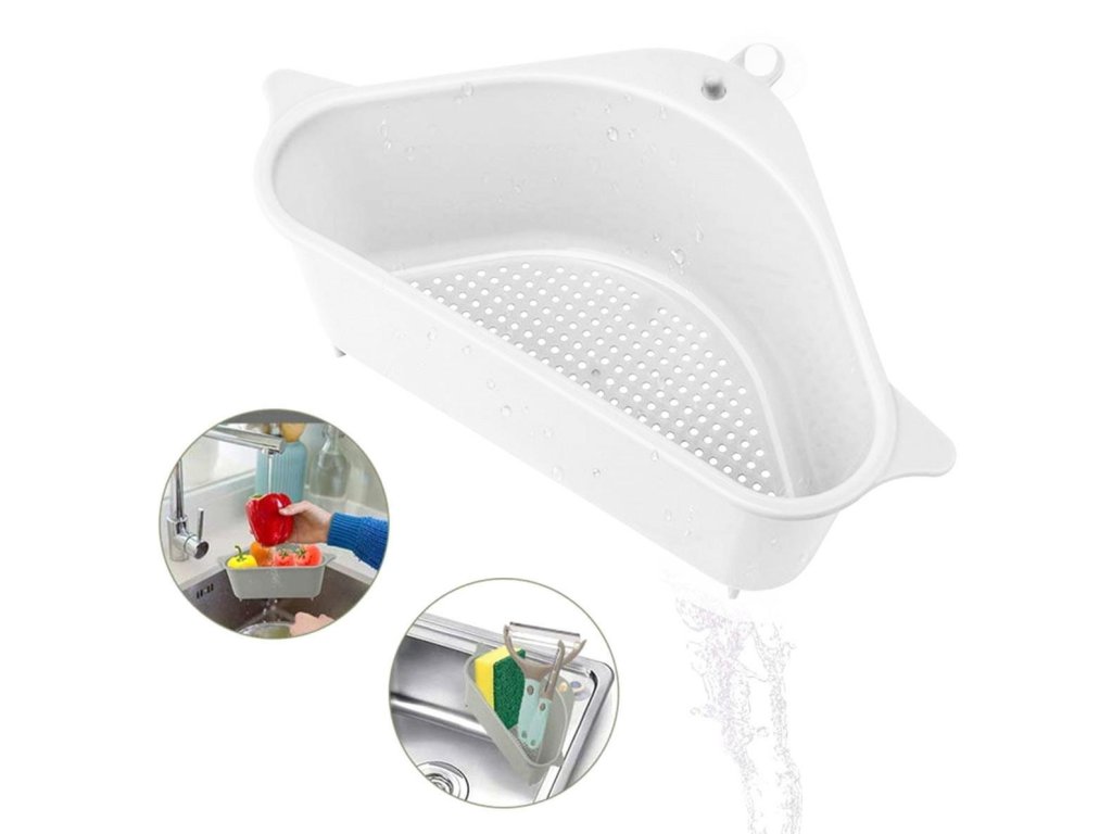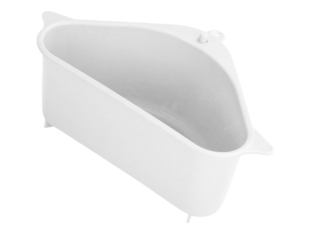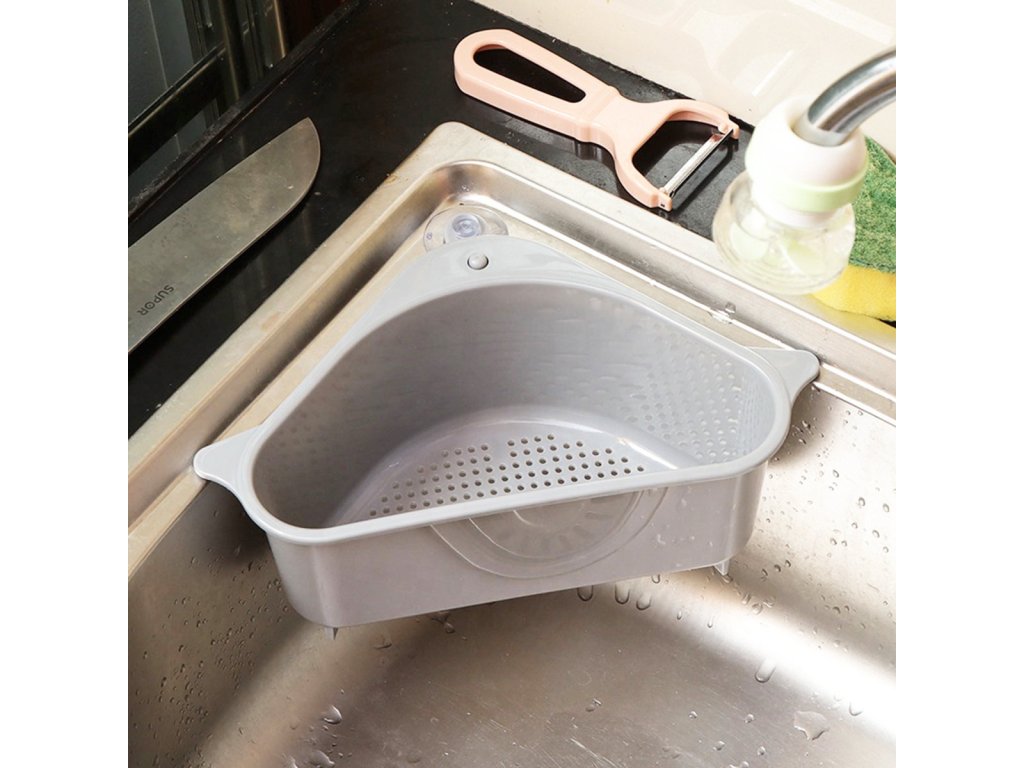 Funkční rohový organizér do kuchyňského dřezu. Usnadňuje udržování pořádku v kuchyni. Skvěle funguje jako nádoba na houbičky, kartáče a drátěnky. Perforované dno umožňuje nepřetržitý odtok vody. Snadná montáž na okraj dřezu díky přiložené přísavce a bočním úchytům.