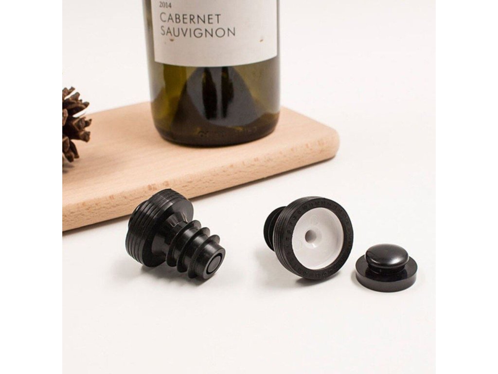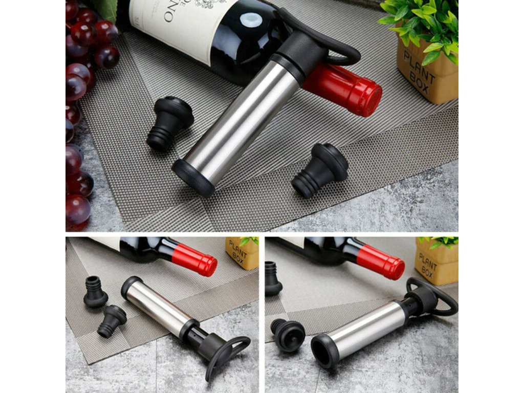 Vakuová pumpička se dvěma uzávěry je skvělým zachráncem pro ty, kterým stačí večer k filmu jedna sklenička vína. Víno po otevření lahve mnohdy rychle zvětrá a pak už není moc dobré. Díky pumpičce odsajete z otevřené lahve přebytečný vzduch a vakuový uzávěr zpomalí proces oxidace. Víno si tak po delší dobu zachová svou čerstvost, chuť a vůni.