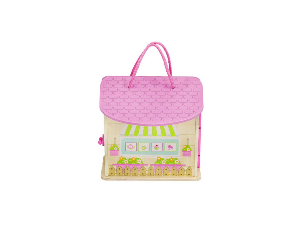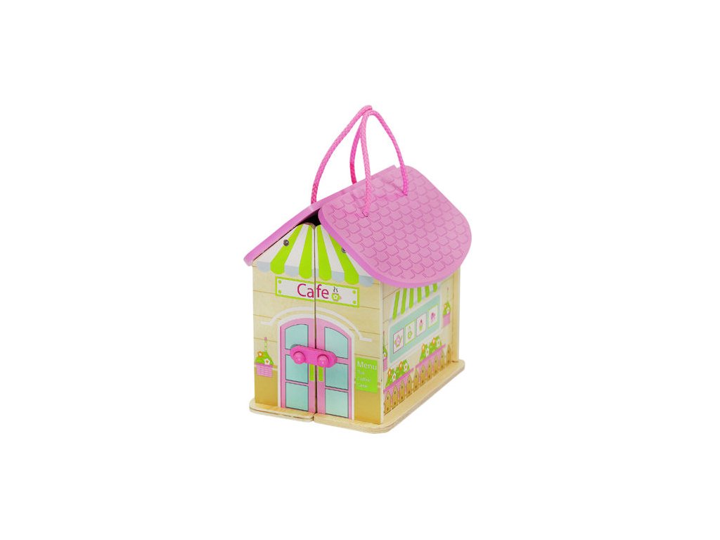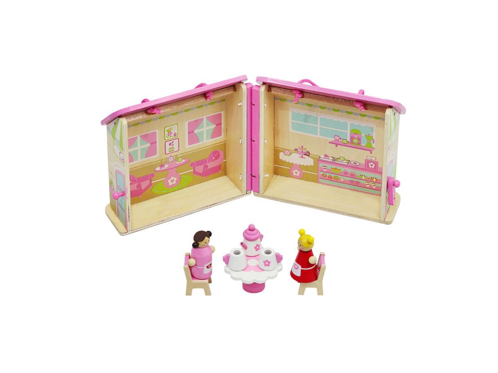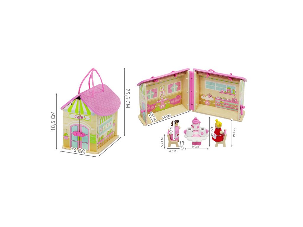 Sada obsahuje skládací kavárnu se šikmou střechou a další prvky ve tvaru ženských figurín, stolu, židlí, čajové konvice a šálků. Sada umožňuje kreativní použití a zajímavou zábavu. Po rozvinutí domu máme k dispozici levou a pravou stranu s výtisky napodobující výzdobu skutečné kavárny.