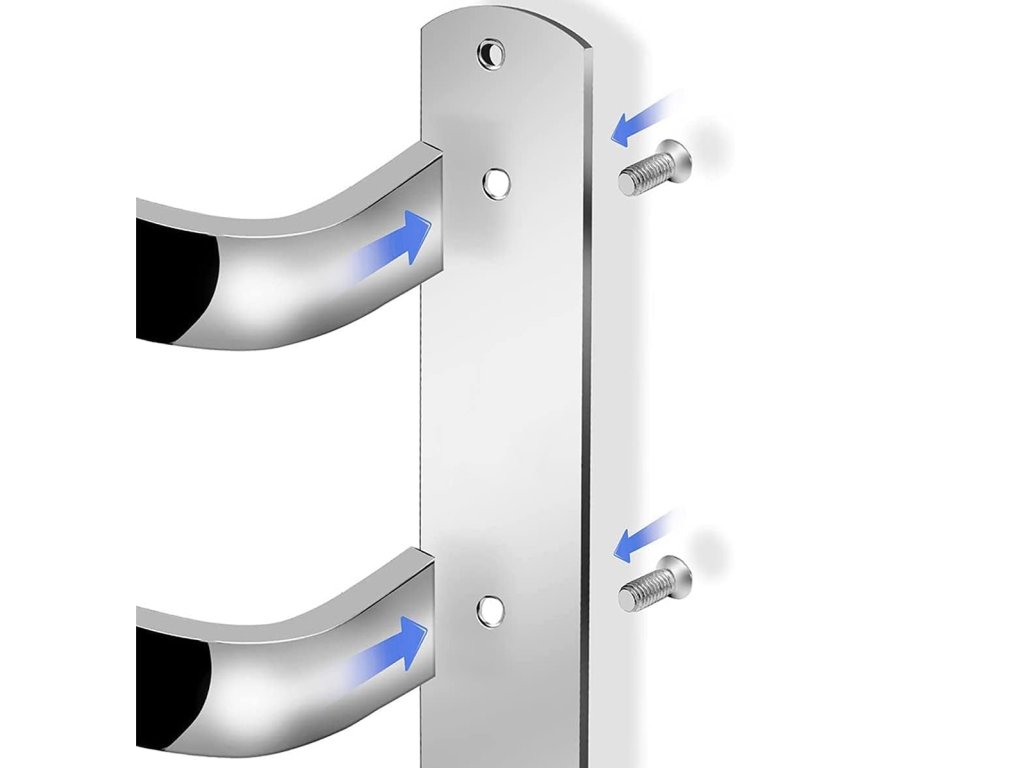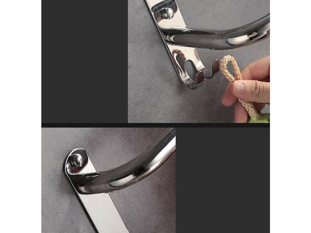 Kovový věšák na ručníky do koupelny v loftovém stylu. Vyroben z masivního hliníku ve stříbrné (chromové) povrchové úpravě, je odolný vůči vlhkosti a oděru, což zaručuje dlouhé a bezproblémové používání. Držák má dvě ramena pro zavěšení ručníků. Dva páry dalších háčků se nacházejí na spodní straně konstrukce. Standardní montáž šrouby (všechny komponenty jsou součástí balení).