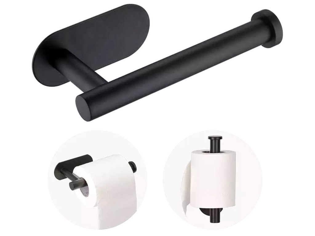 - Samolepící držák na toaletní papír v černé barvě.