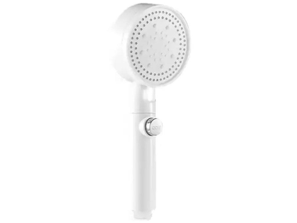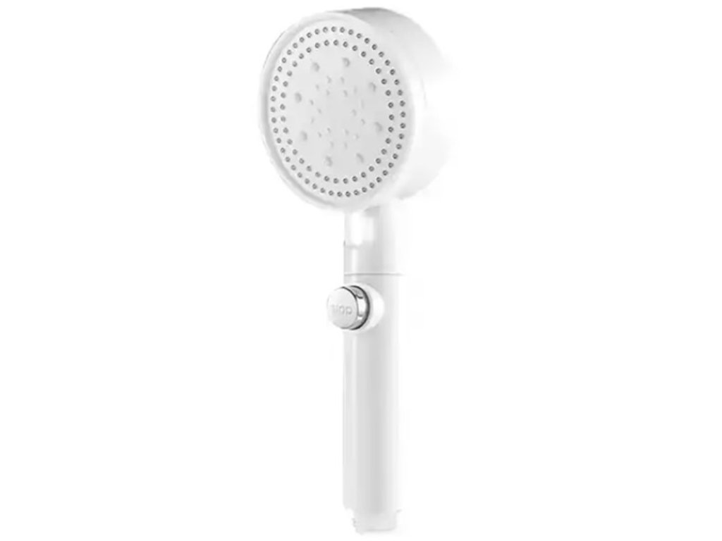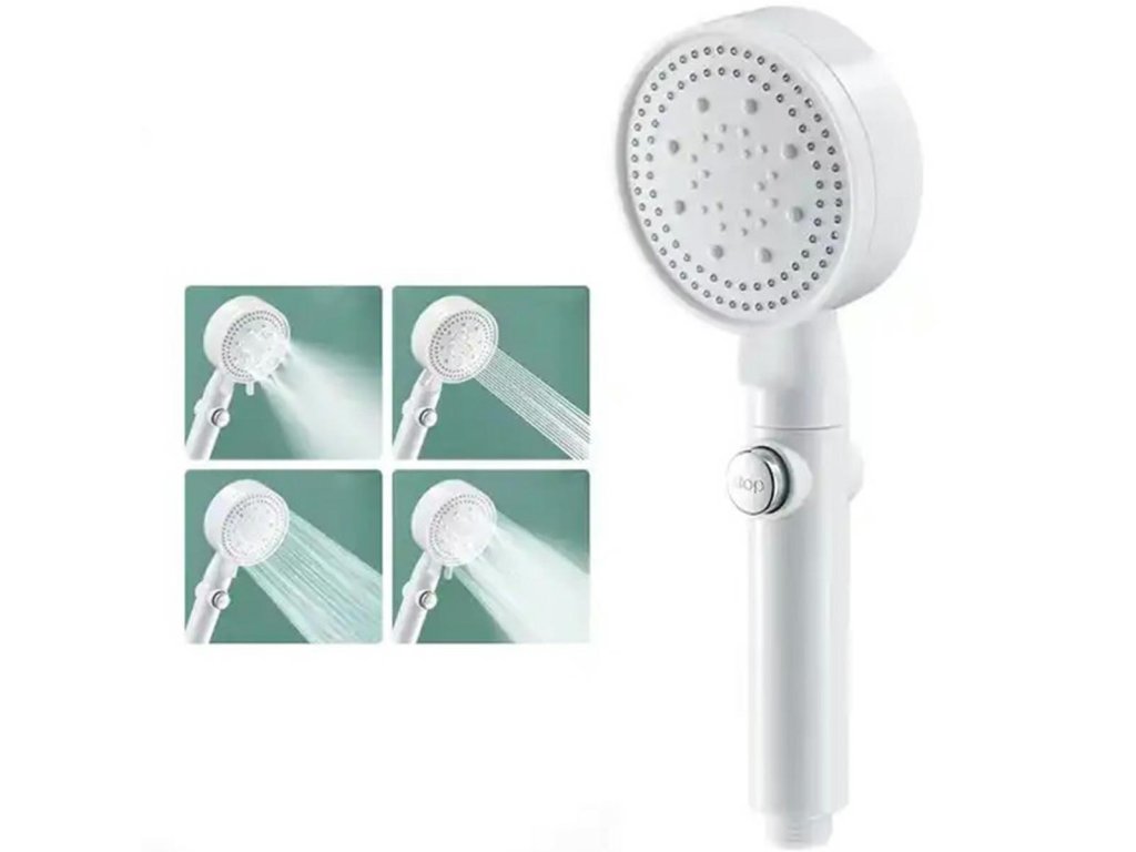 Bílá sprchová hlavice. Určeno pro instalaci do standardní sprchové hadice. Hlavice má funkci volby režimu sprchování (5) a funkci STOP, která zastaví proud. Vestavěný ventilátor zvyšuje výkon sprchy bez zvýšení spotřeby vody.