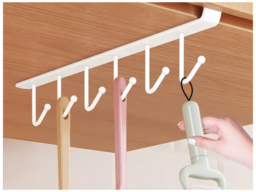 Kovový věšák se 6 háčky je praktickým a elegantním řešením pro organizaci kuchyně. Díky instalaci pod skříňku poskytuje úsporu místa a snadný přístup ke každodennímu nádobí. Je vyroben z odolného kovu a vyznačuje se vysokou odolností proti deformaci a zatížení.
