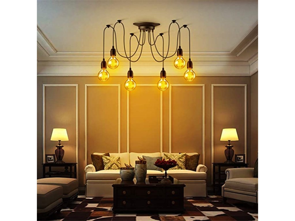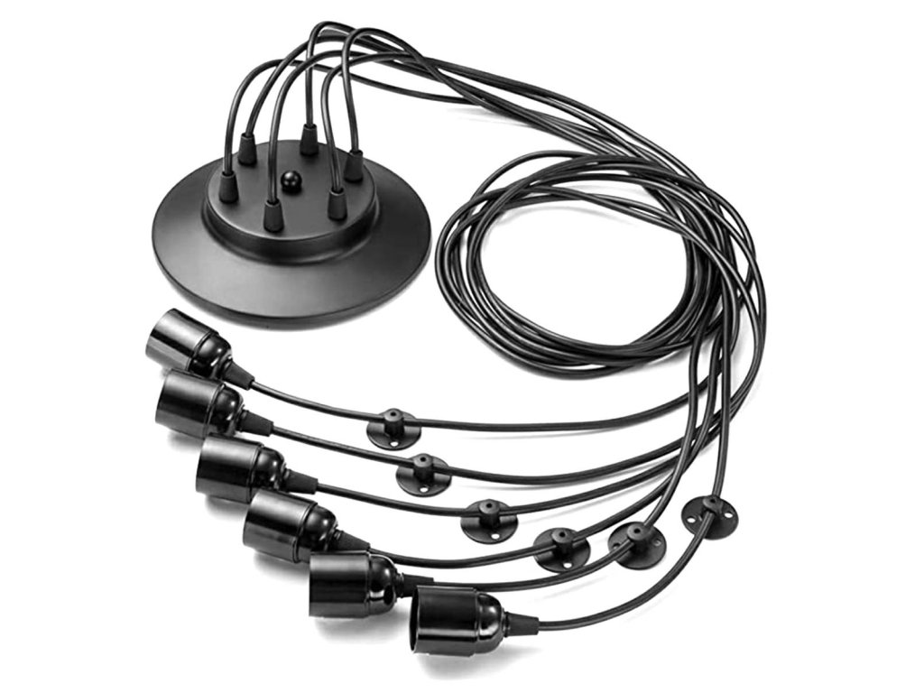 Nádherný dekorativní prvek - pavoučí lustr s až 6 světelnými body! Všechny světelné body mají 115 cm dlouhý kabel zakončený paticemi na žárovky E27. Je možné ji zkrátit, což jí umožní lépe se přizpůsobit podmínkám uvnitř místnosti. Je to skvělý nápad pro zdobení elegantních pokojů ve stylu podkroví nebo pro rozjasnění tmavých koutů! Skvěle se hodí jak ke klasickým kulatým žárovkám E27, tak ke všem dekorativním se stejným závitem!