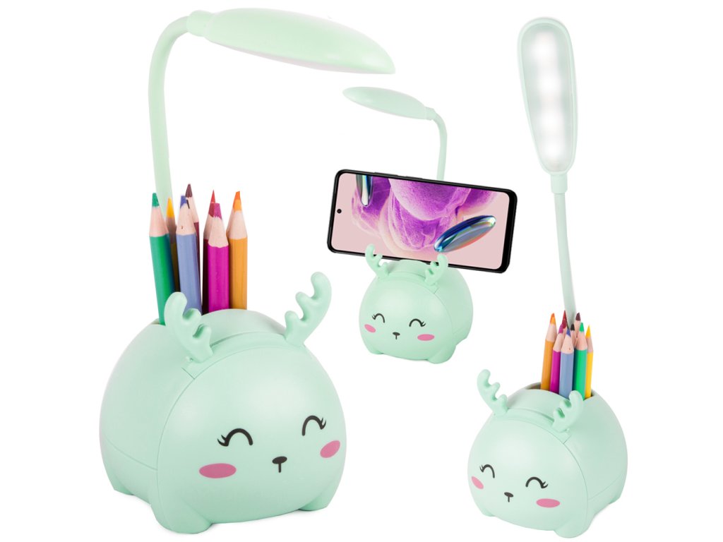 Lampička je vyrobena z pevného plastu, příjemného na dotek .Lampa se bude skvěle hodit i jako organizér na psací potřeby a jako stojánek na telefon.