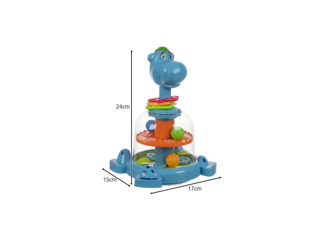 - PODPORA RUČNÍHO VÝVOJE A KOORDINACE POHYBU - hračka poskytuje nejen zábavu, ale především podporuje rozvoj manuálních dovedností dítěte a koordinaci oko-ruka . Přitlačit hroší hlavu na hlavu a sledovat, jak se koule točí, je skvělý způsob, jak toho dosáhnout rozvíjet zručnost a sílu rukou dítě. Navíc točící se kolo a skákací míčky učí batole vztahy příčiny a následku a rozvíjejí je logické myšlení a soustředění .