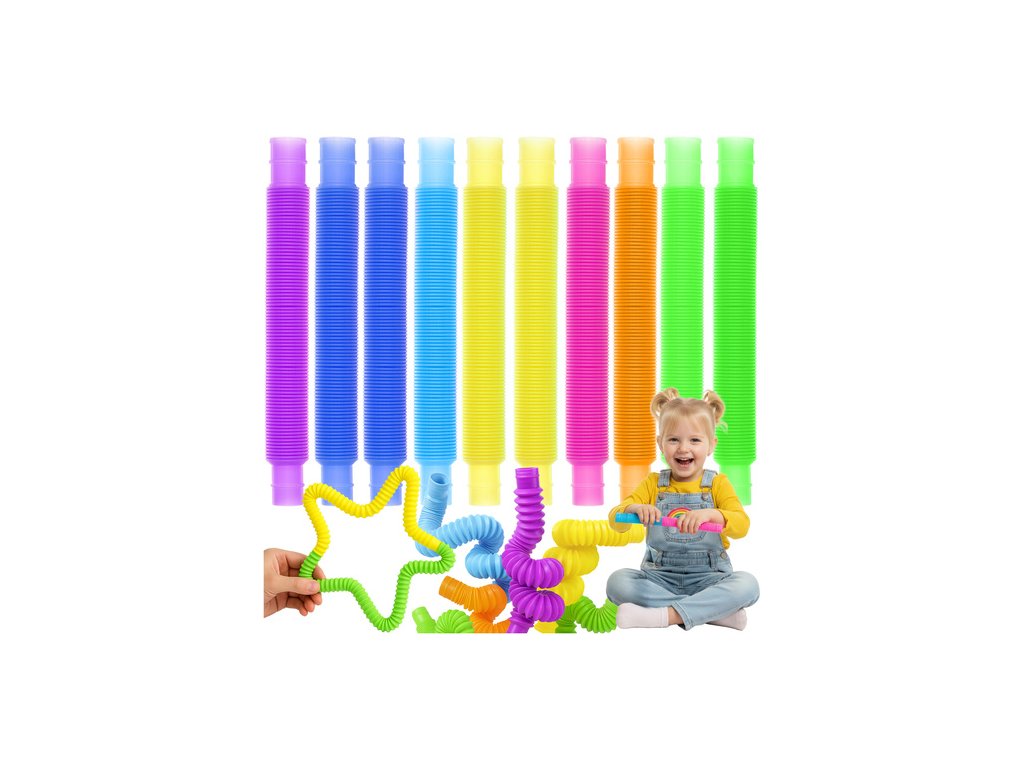 Flexibilní, barevné trubice poskytují hmatovou stimulaci, rozvíjejí jemnou motoriku a pomáhají snižovat stres prostřednictvím příjemných zvuků a pohybu. Dají se ohýbat, natahovat a spojovat do různých tvarů – od dlouhých tunelů až po nápadité tvary – a stimulují tak kreativitu a poskytují hodiny relaxační hry.