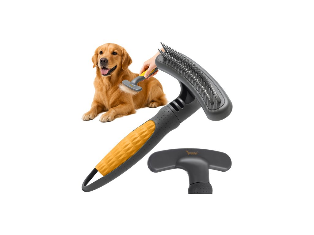 Purlov hřeben s rotačními zuby pro psy a kočky. Dvouřadý kartáč na chlupy – pohodlné a efektivní česání.