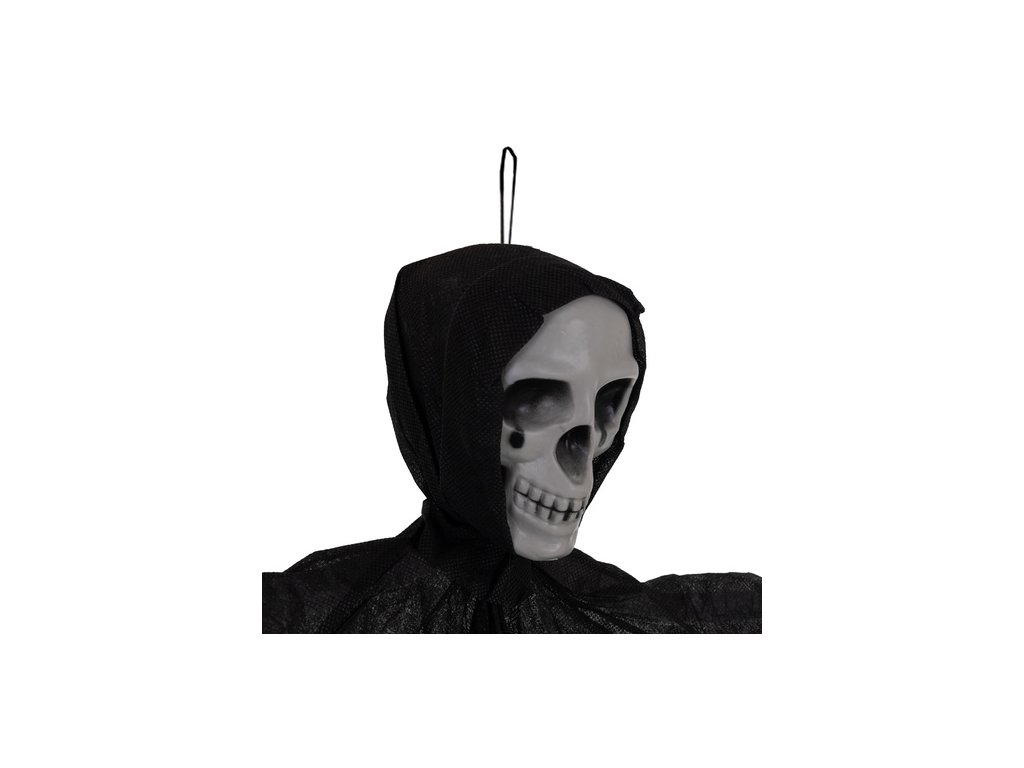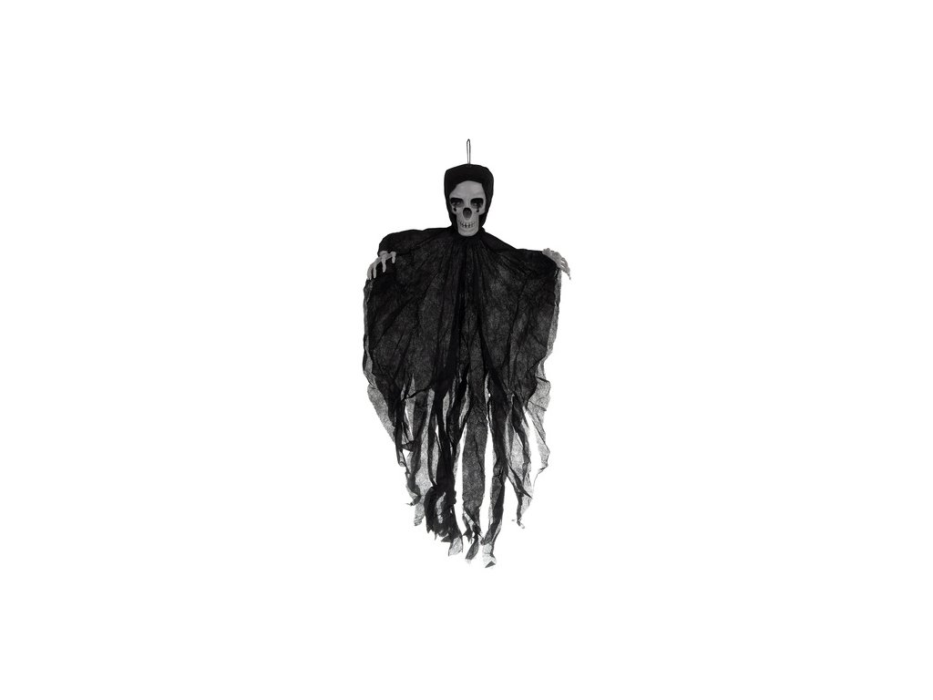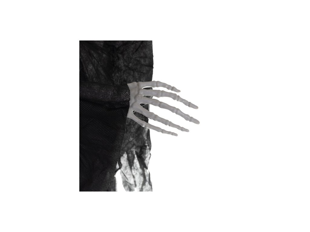 Realistická kostra s lebkou a potrhanou látkou je dekorací, která okamžitě navodí atmosféru hrůzy. Díky lehké konstrukci a poutku jej můžete zavěsit kamkoli – na strop, dveře, lampu nebo na zahradu . Látka, která se pohybuje ve větru, vytváří iluzi vznášejícího se zjevení a velký rozměr činí z rámu ústřední bod dekorace. Ideální na Halloween, tematické večírky nebo na pódiové dekorace – hotová dekorace, která vždy přitáhne pozornost.