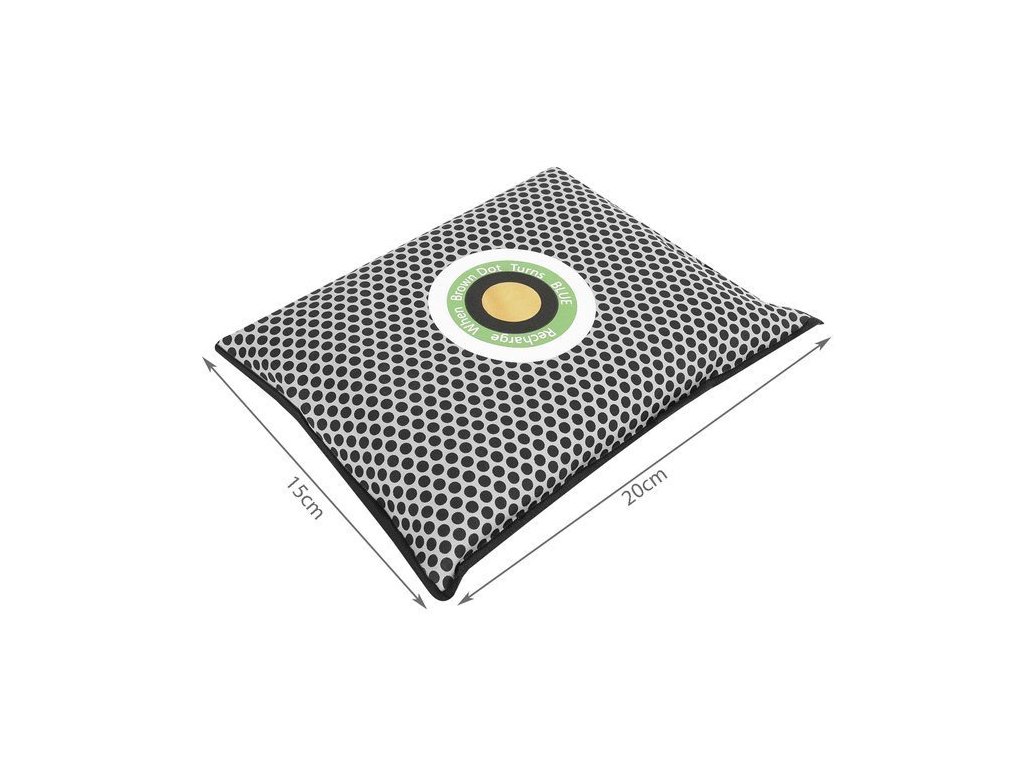 - SNADNÉ POUŽITÍ – uprostřed je umístěn odvlhčovač modrý indikátor vlhkosti. Pokud má barva pomerančový znamená, že je suchý a připravený k použití . Když se tato barva změní na modrý odstín znamená, že je naplněný vlhkostí a je třeba jej vysušit . Usušit ji můžete například v mikrovlnné troubě, čímž se v ní nashromážděná vlhkost odpaří. Po vysušení se barva indikátoru změní na oranžovou, což znamená, že je připraven k použití.