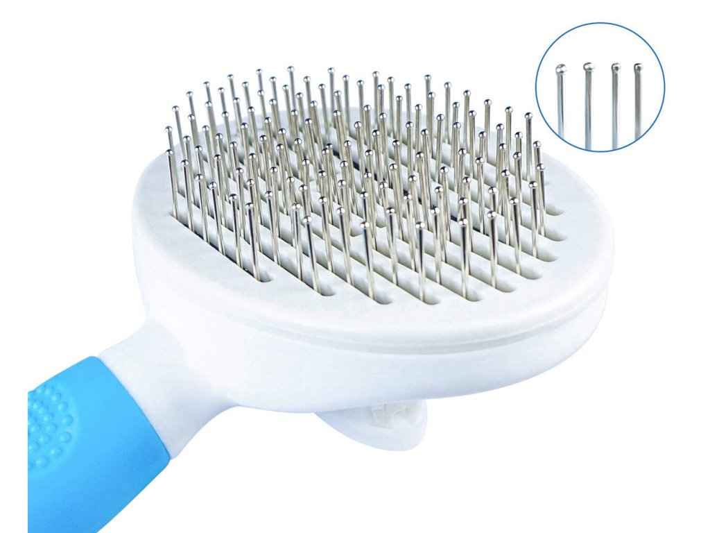 Kartáč má ergonomickou a protiskluzovou rukojeť, která výrazně zvyšuje komfort při kartáčování. Jehličky jsou v rovných liniích a mají kulaté konce, aby mazlíčka při kartáčování nezranily a navíc ho uvolňovaly jemnou masáží kůže. Pozitivně působí také na lesk srsti, a to díky rozložení přirozeného tuku.