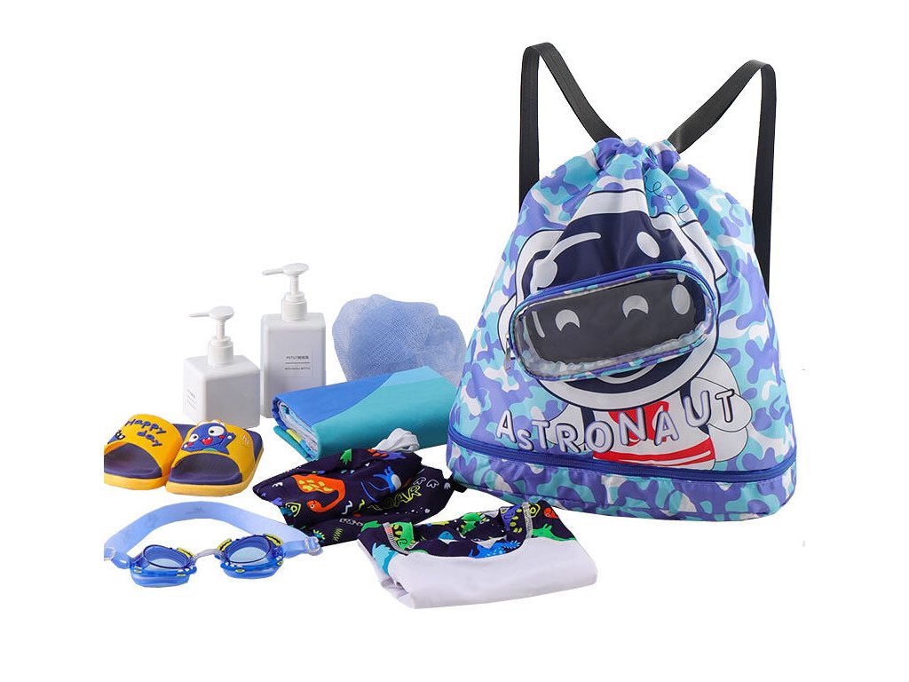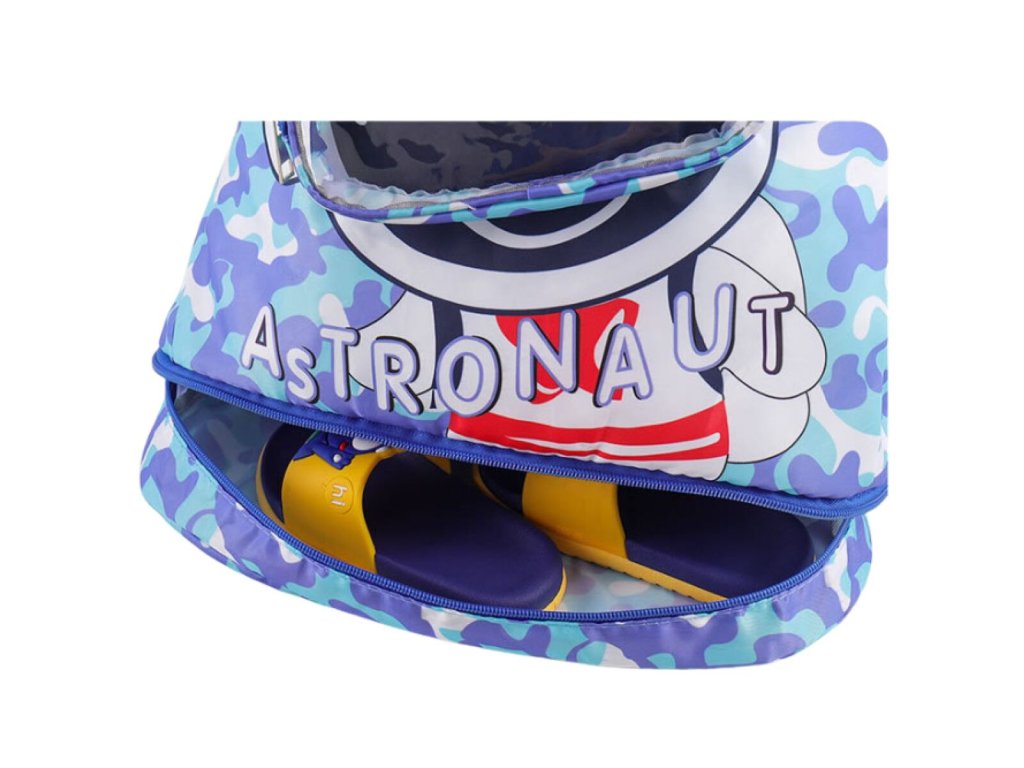 Ať už jdete k řece, rybníku, bazénu nebo na pláž, plavecký batůžek Merco Astronaut by neměl chybět žádnému dítěti. Batoh je vyrobený z kombinace materiálu s voděodolnou úpravou. Batoh má jedno hlavní oddělení, kam uložíte veškeré vybavení k vodě jako plavky, ručníky, oblečení, ploutve apod. Dále nabízí přední kapsu na zip pro plavecké brýle a spodní kapsu na zip pro boty do vody či pantofle. Díky dvěma nastavitelným popruhům vše lehce přenesete na zádech. - materiál: Oxford tkanina, PVC, polyester - rozměry: 35 x 32 x 12 cm - objem: cca 13 l - hmotnost: cca 160 g - 1 hlavní oddělení - přední kapsa na zip pro plavecké brýle - spodní kapsa na boty - 2 nastavitelné popruhy s přezkouDodatočné parametre