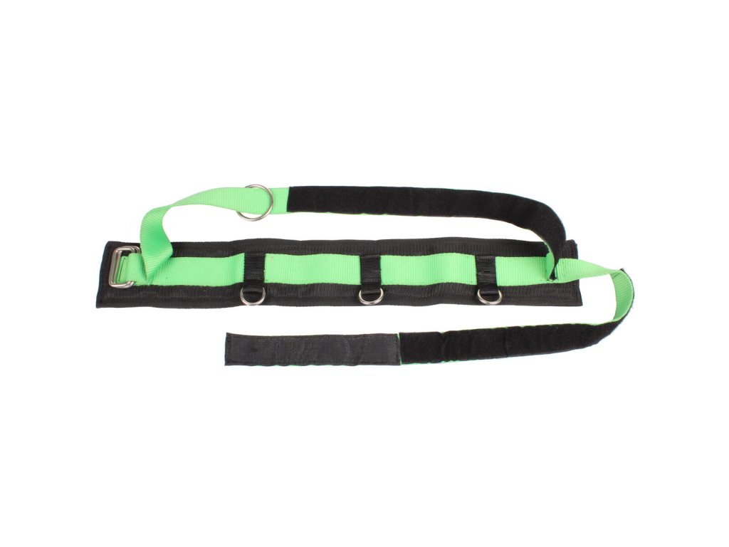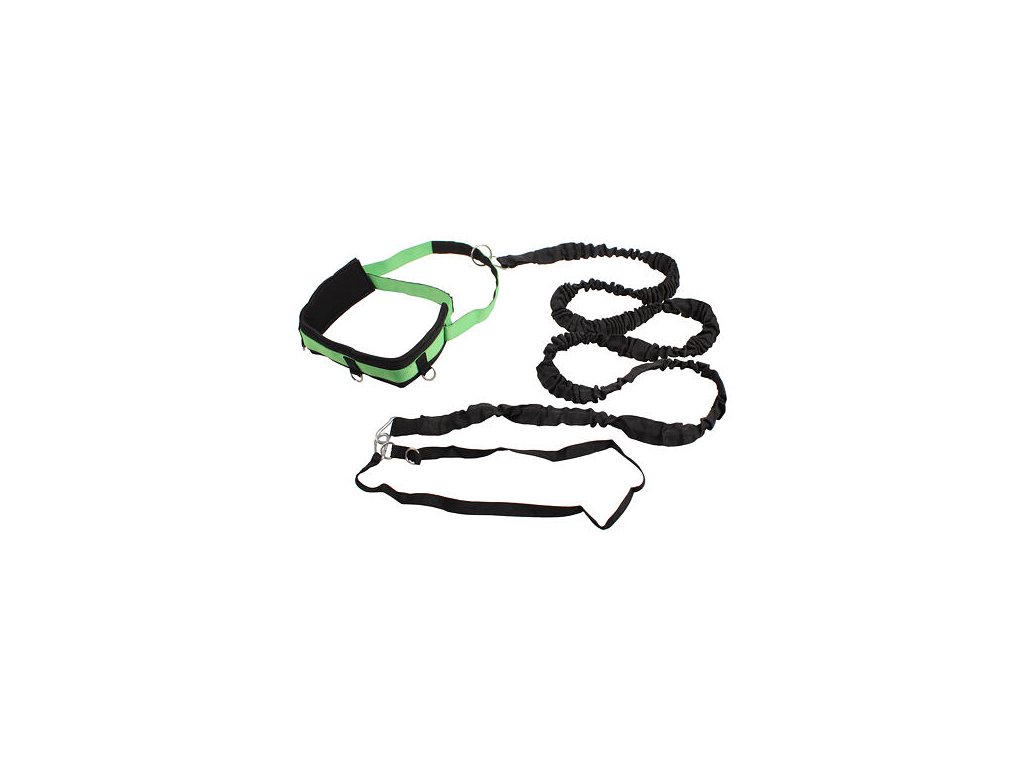 Ideální pomůcka pro posílení a tvarování svalstva na nohou formou překonávání odporu 250 cm dlouhé a 1,1 cm silné gumy uchycené kovovou karabinou za pevnou překážku. Stejným způsobem se guma připne i k bedernímu pásu, který je pro větší pohodlí polstrovaný, délkově nastavitelný a široký 10 cm, takže je vhodný pro všechny věkové i hmotnostní kategorie. Vyrobeno z gumy a nylonu.Dodatočné parametre